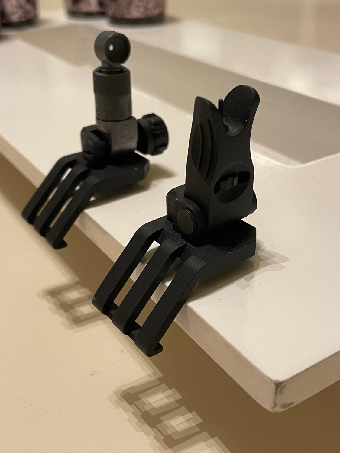 They fit straight on to a 20mm rail and are angled so they can be used in conjunction with other sights.