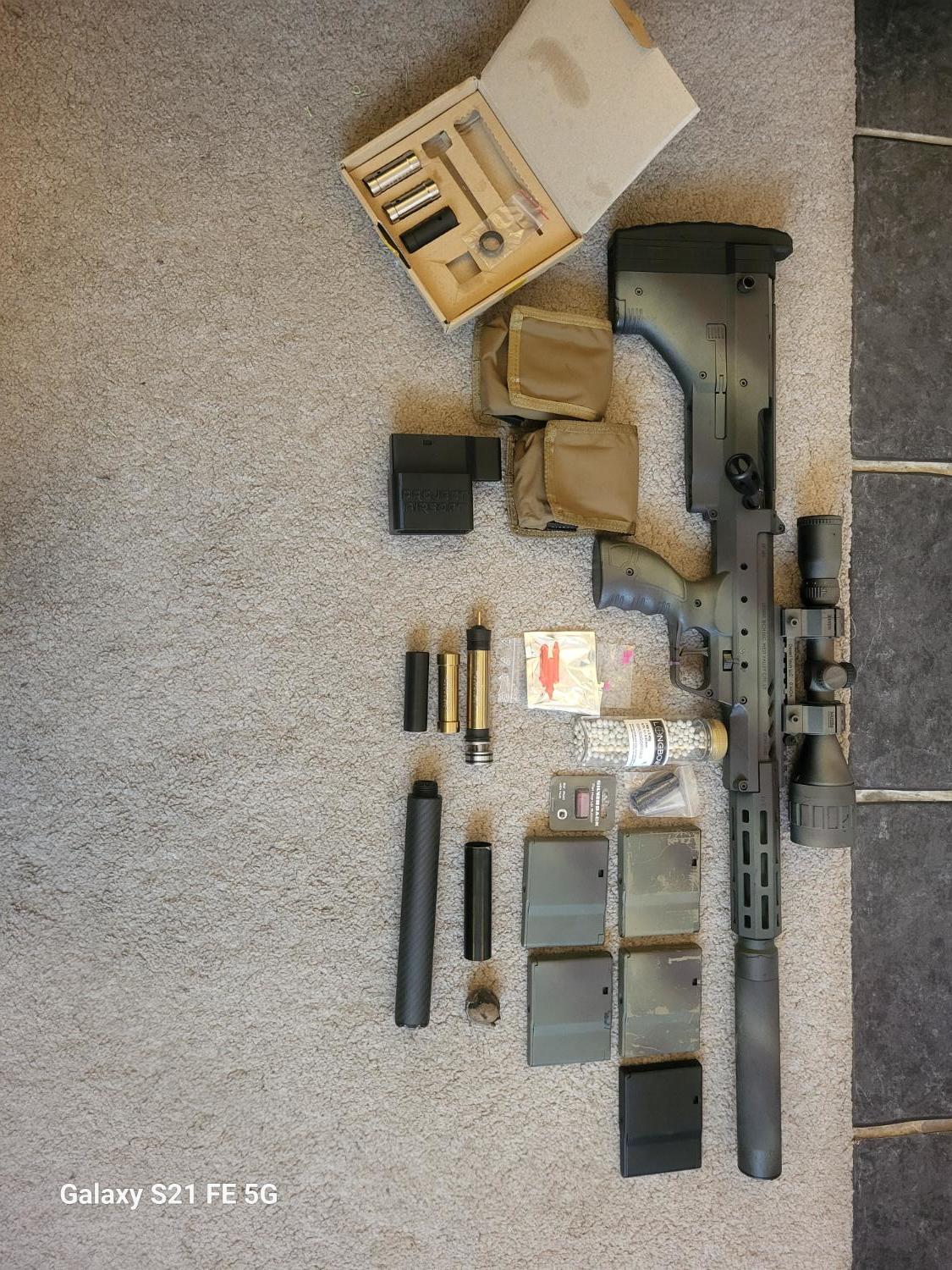 Rifle shoots around 2.2j at about 310fps on 0.48g. Accurate to around 85m but can shoot further if lobbing them and a little luck.