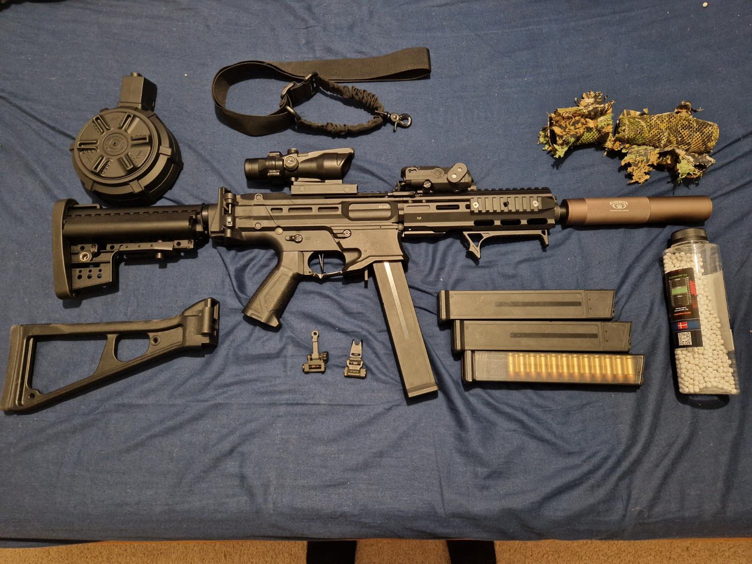 Extra stock, ghilli supressor cover, original iron sights,sling. etc