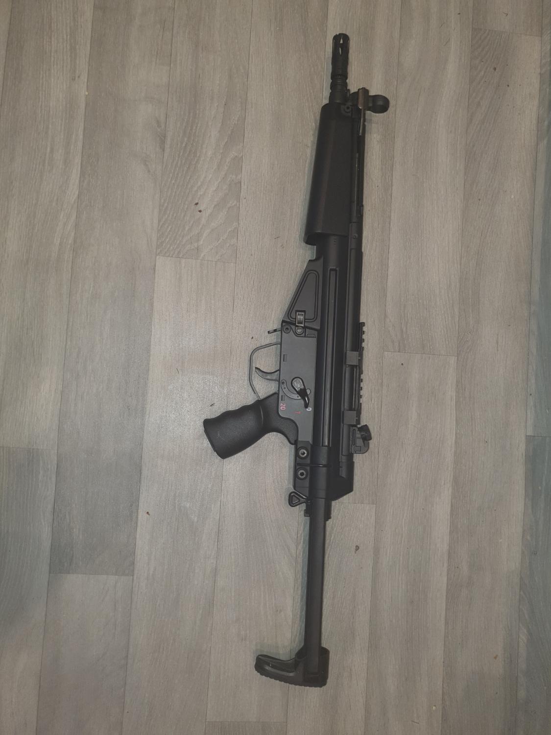 Bought on a whim but not going to get round to using this. It is entirely stock and doesn't seem to have been used by its previous owner at all. I've only test fired it myself and not skirmished it once.
