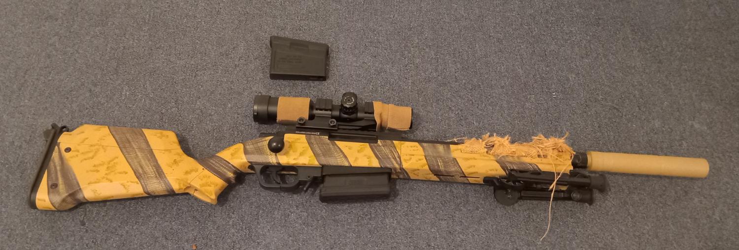 Barrel upgraded to a 6.03 x 50cm one to replace the short two part barrel it comes with.