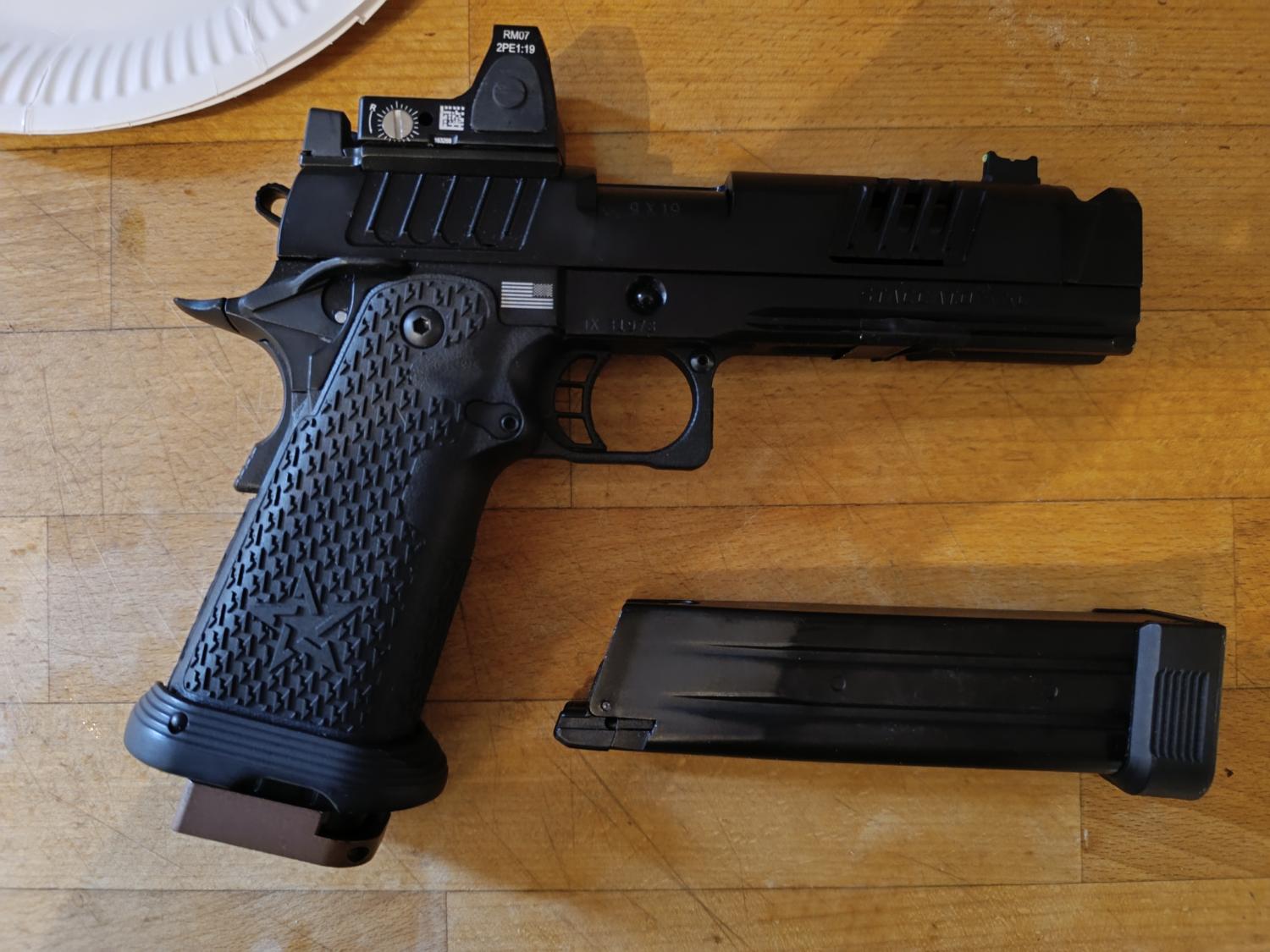 Army staccato xc, rmr plate, clone rmr, 2 gas tight mags, padded pistol bag £140