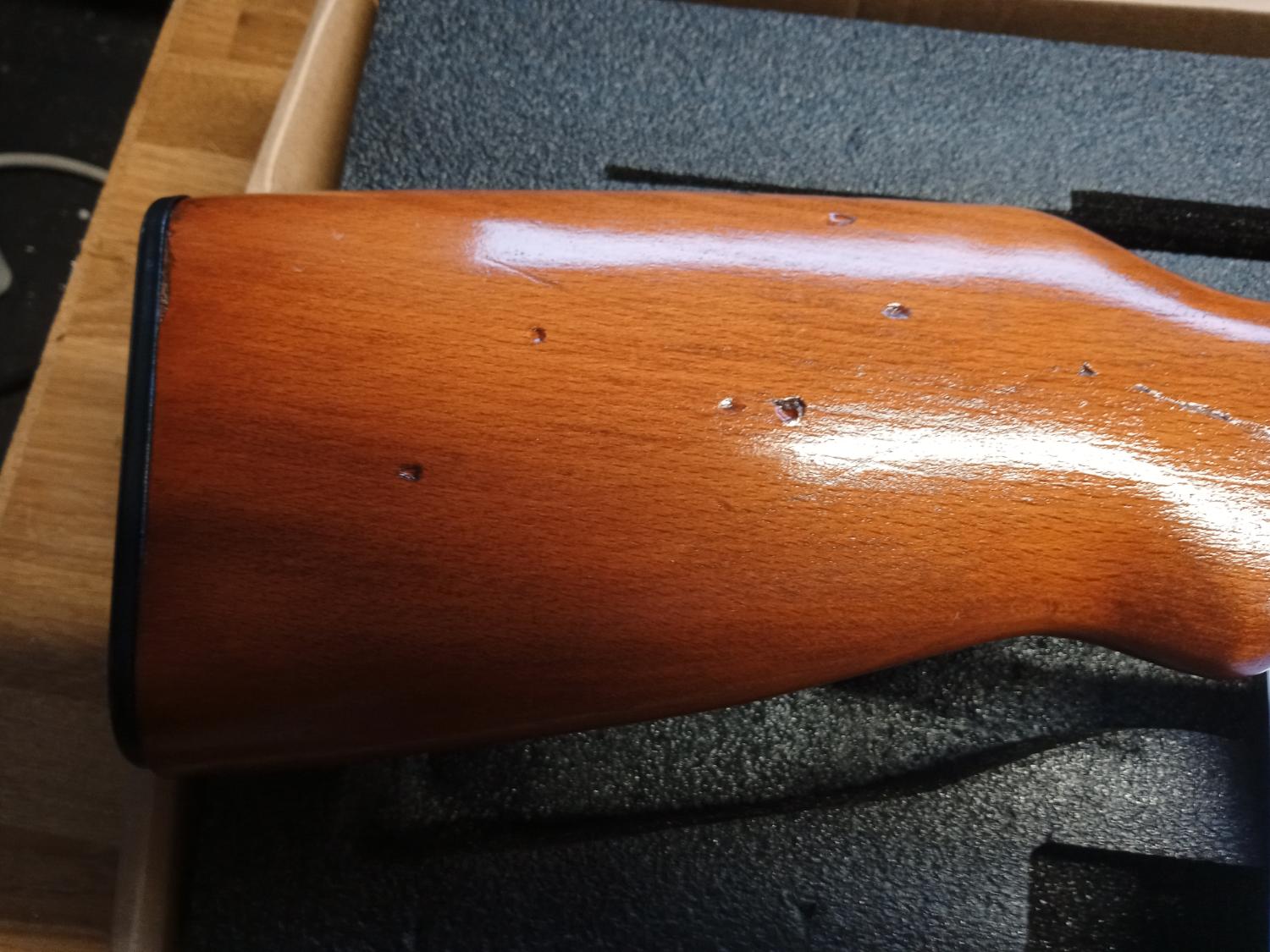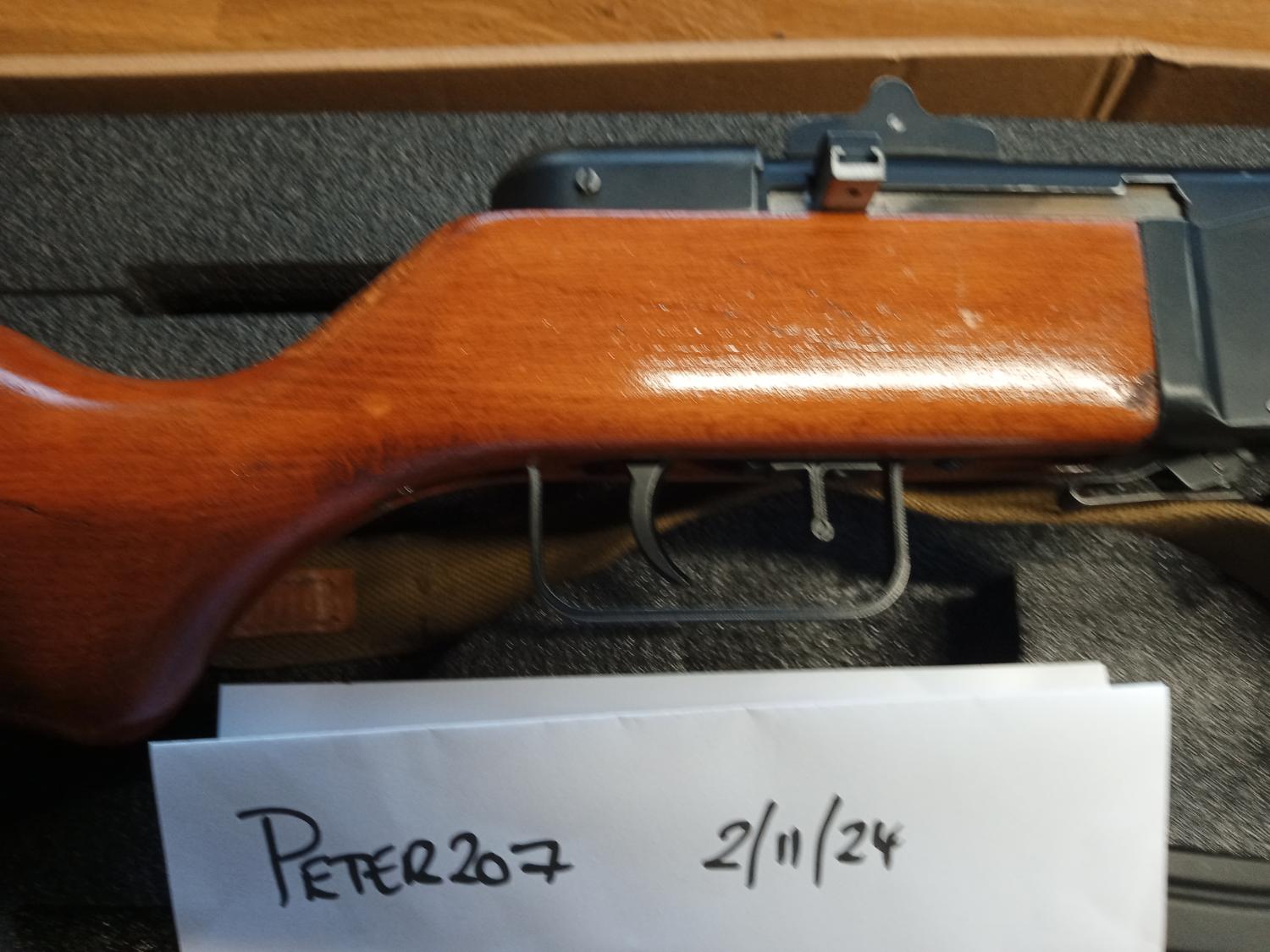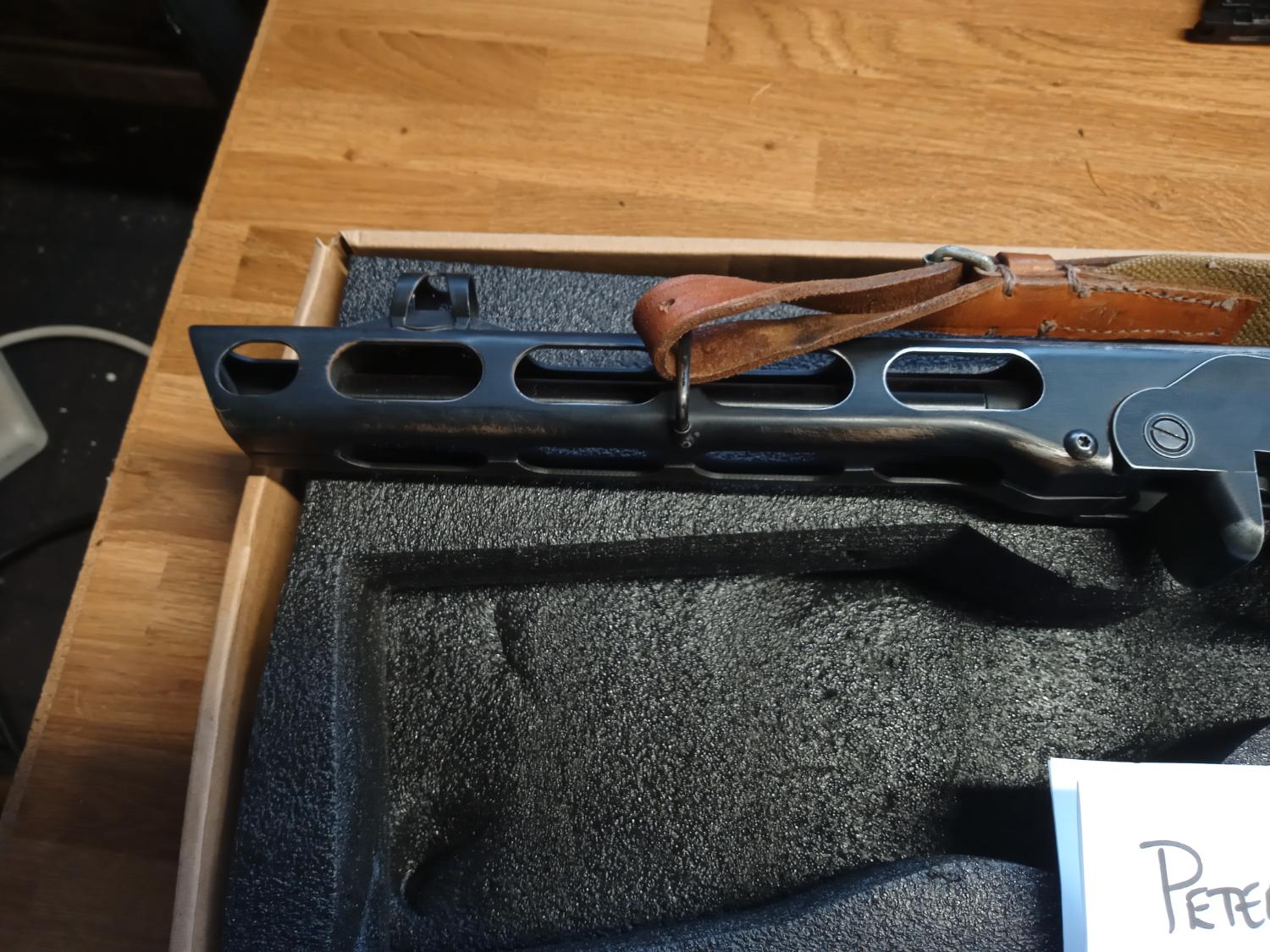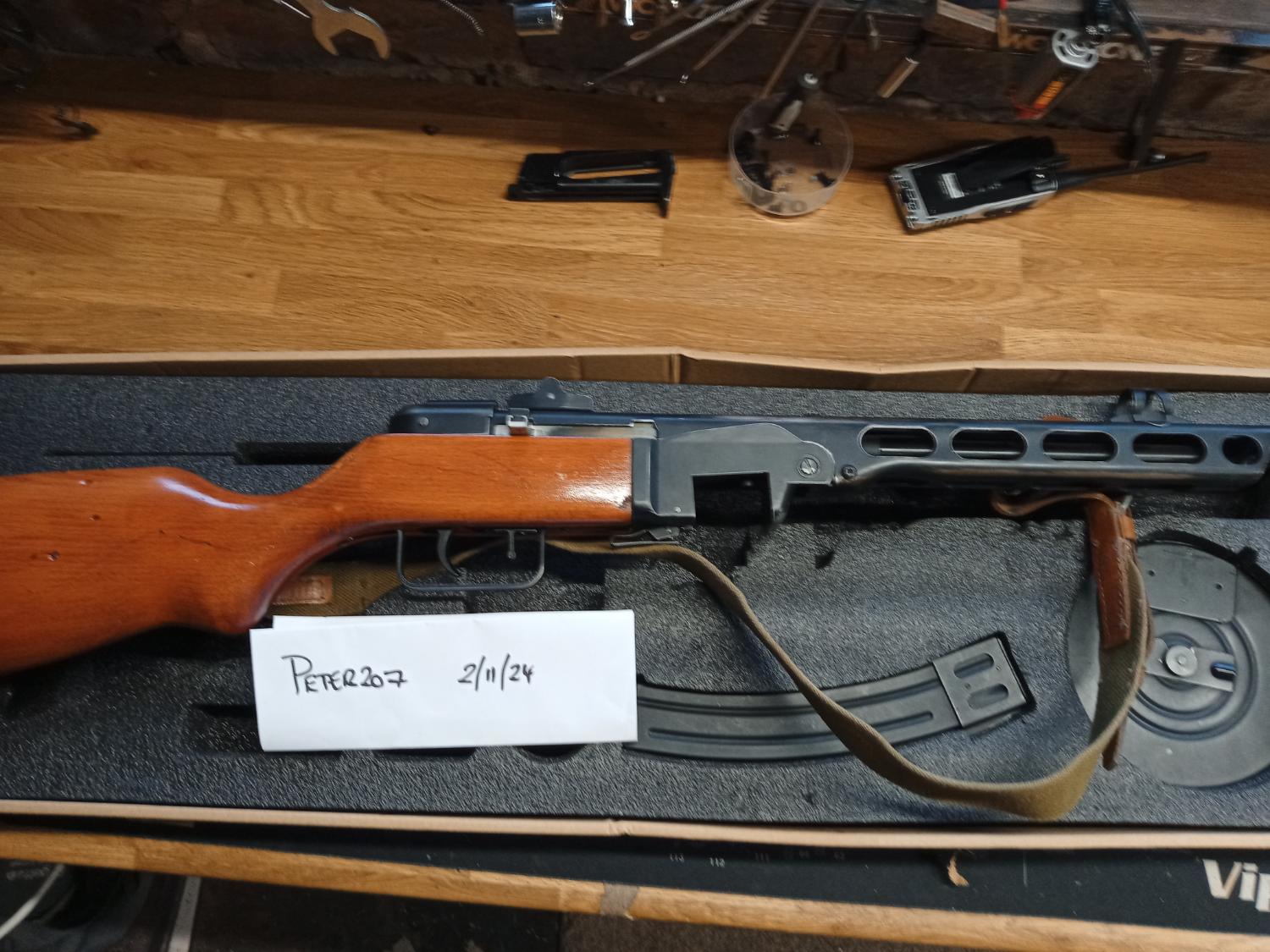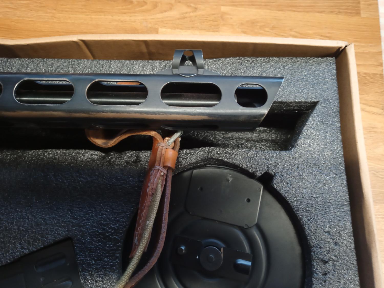 here's a PPSH that I bought a while ago to fettle. Replaced the crappy platicwood stock with a wood one, which I refinished and distressed a little, threw out the crappy gearbox for a new one, and got the correct sling for. As you can see it's fairly consitant on power measured with a 0.2g. The Ebb is fun, but can be disabled by lifting the bolt off the slide but makes no difference to the fps, but probably less likely to break! I've never skirmished it, and several times I've almost put it up for sale only to change my mind after getting it out! Anyway I've got to thin out the armory so here it is. You must have a valid defence and be over 18 to buy. Postage isn't included but PM me with an address for a estimate to delivery. Payment via paypal, if you feel you want to use goods and services please pay the additional fees, however please check my feedback to see how my previous sales have gone!
