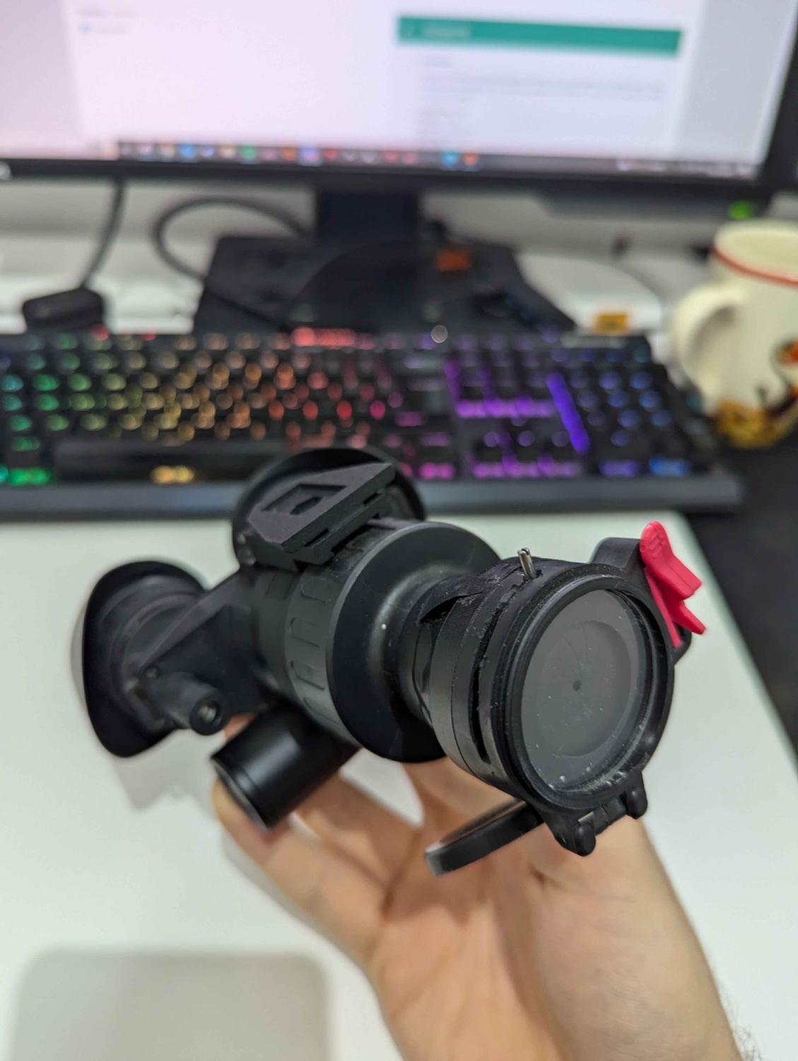 - Adjustable depth of field adjuster with a modified Butler Creek lens cap & a fitted poly carb lens protector