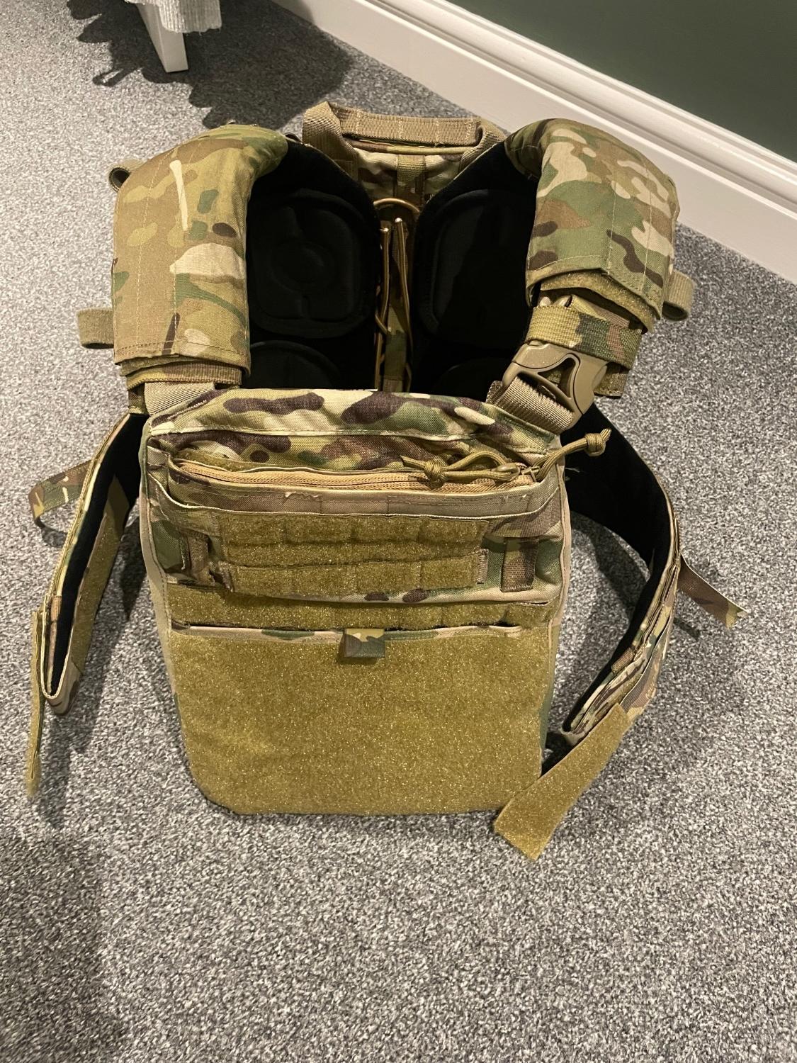 | From new, used 3x times Crye AVS in multicam Medium plate bags, small harness Comes with AVS shoulder padS |