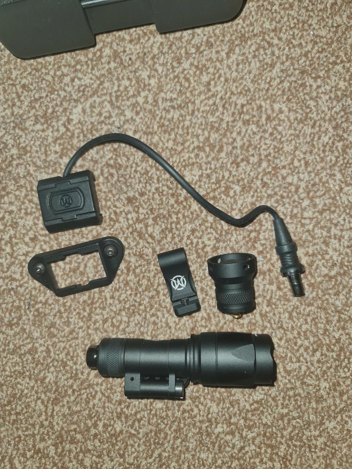 Comes with everything in the box plus a Wadsn Mod button with surefire connector and both picatinny and mlok mounting adapter