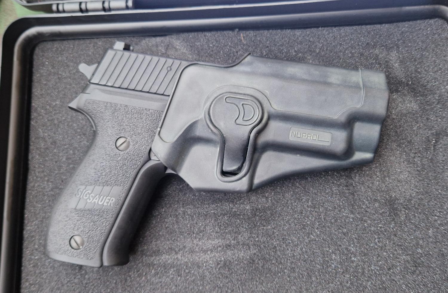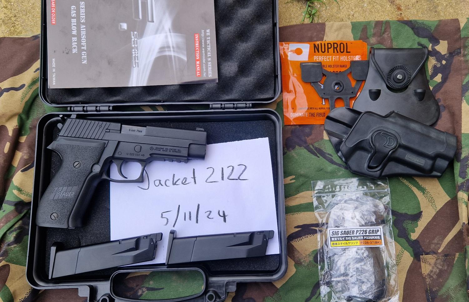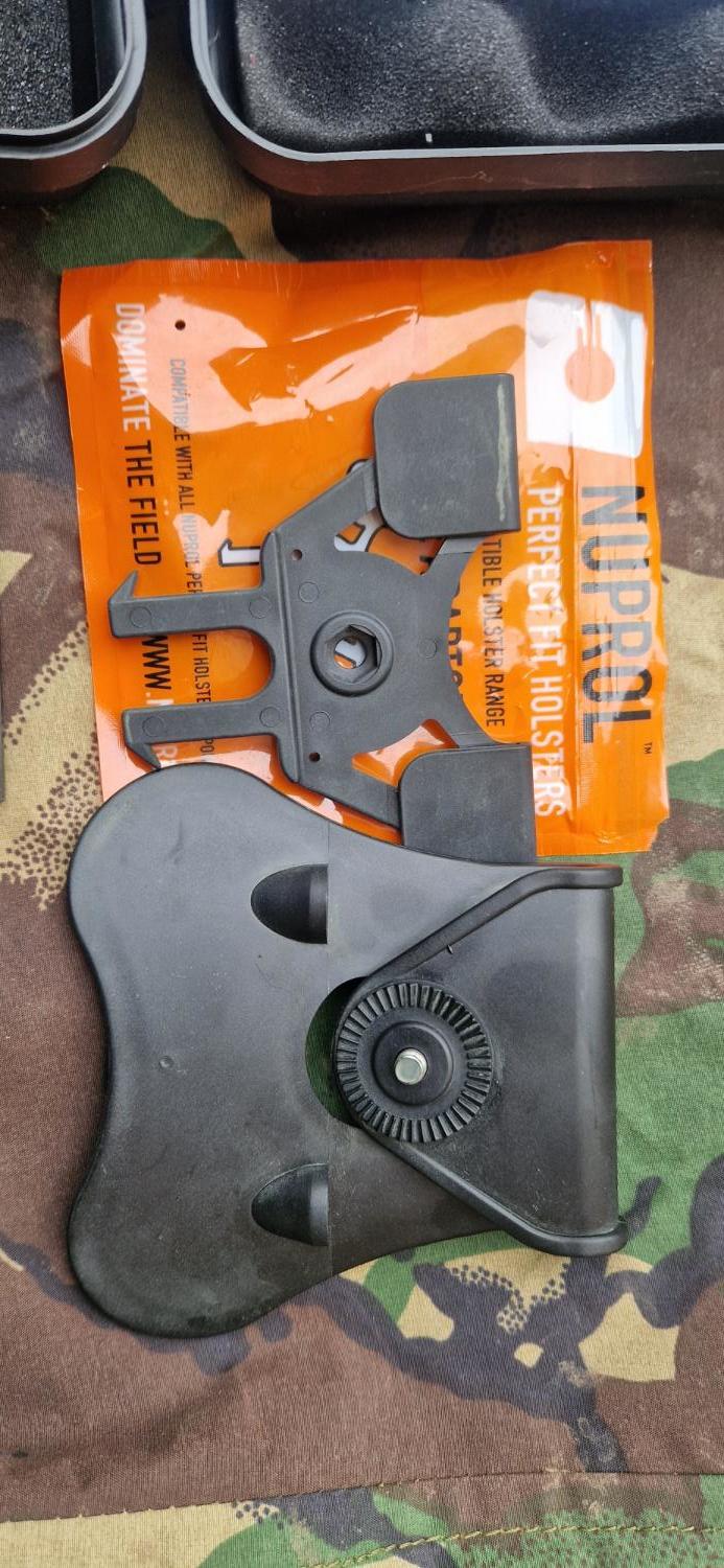 Good Condition with nice trades and Guarder Grips, 2 Magazines, Nuprol Serpa style Holster With belt and molle attachments and case.