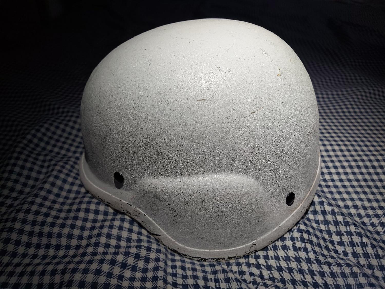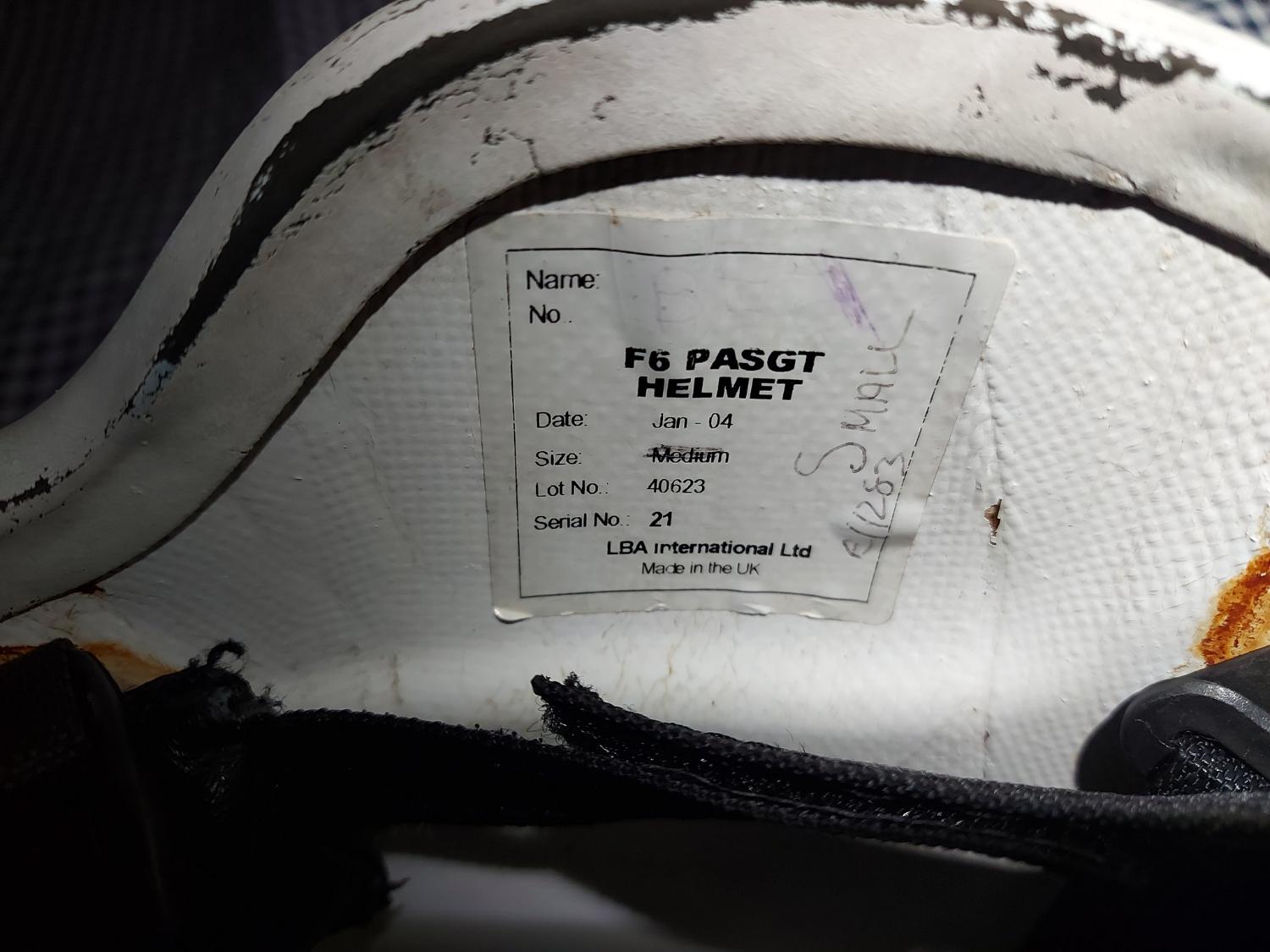 LBA International Ltd F6 PASGT kevlar helmet. The helmet is lacking part of the chin strap, but these can be easily and cheaply sourced. Has been cleaned and has signs of wear and tear - a well worn look.