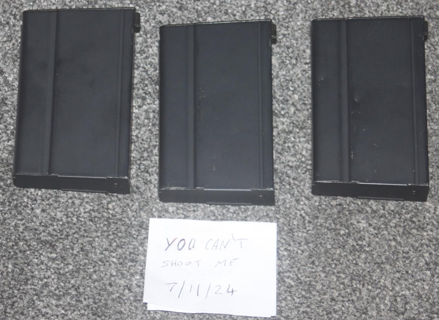 3 M14 Metal Midcaps for Tm M14, hasn`t been used for years and seem to have feeding issues when i tested on 0.28g bbs particularly after the mag is half empty. Unsure on the make possably G&P.