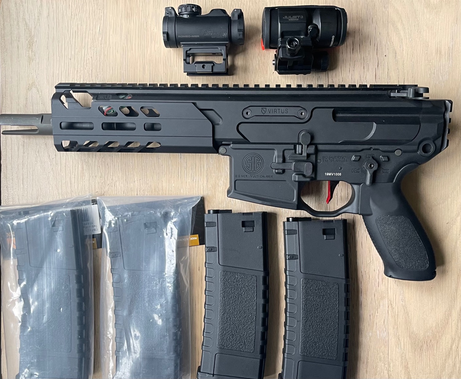 - real steel Sig Sauer red dot + magnifier which look sick with the matching trades