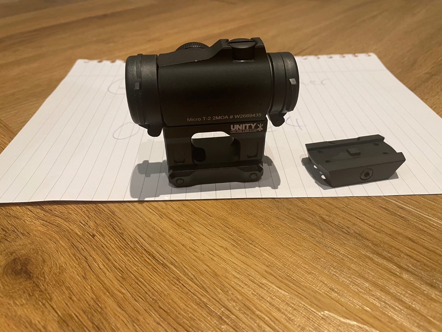 Selling Evolution Gear Aimpoint T2 sight with Repro Unity Riser Mount as surplus to requirements. Sight has full trademarks and holds zero on gbb rifles, if that is something you need.