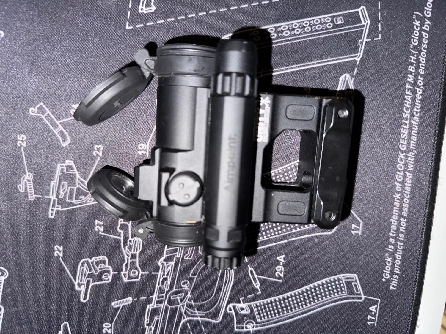 Evoloution gear M5S Red dot on a Unity Fast Mount 2.26 Inch Height Optics Mount in black