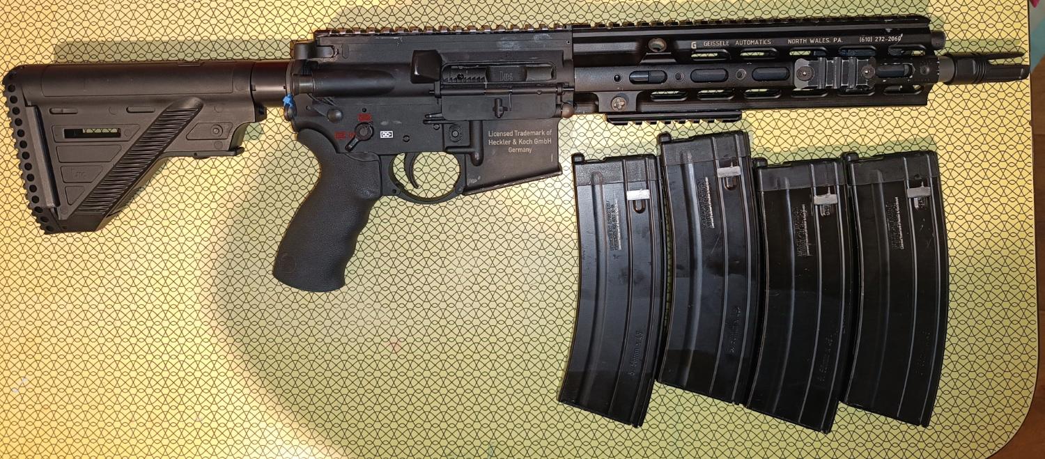 Fully working, just been serviced. Valve knocker replaced, nozzle replaced, has npas inside so FPS is adjustable. Has a Geiselle style rail installed, with trademarks. 4 gas tight mags and more of a ergonomic grip. 2 rail pieces to mount grips and torches.