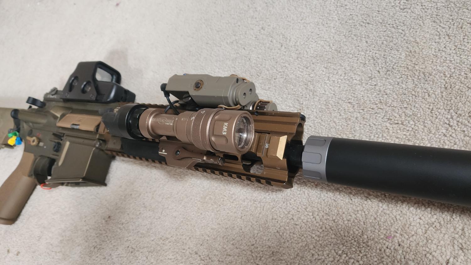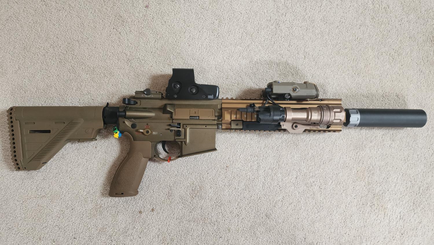 Selling as is, with all attachments (holo, flashlight with strobe function, functional peq15, tracer suppressor) including all bits and bobs I have for it, such as a few hi cap mags and batteries.