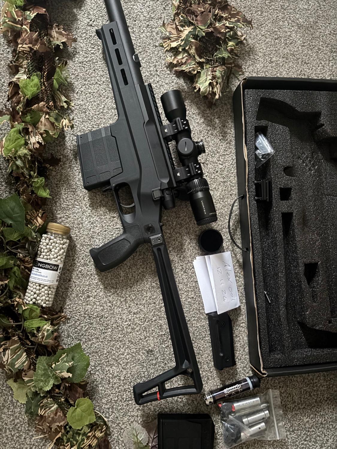Fully built setup with everything you'd ever need for a great shooting sniper that you can take straight to the field. This is the 'lite' version with the metal receiver and cnc hop unit. These were only released a few months ago and has only been used occasionally. It's in excellent condition with no scratches on the metal, feels rock solid despite being very very lightweight.