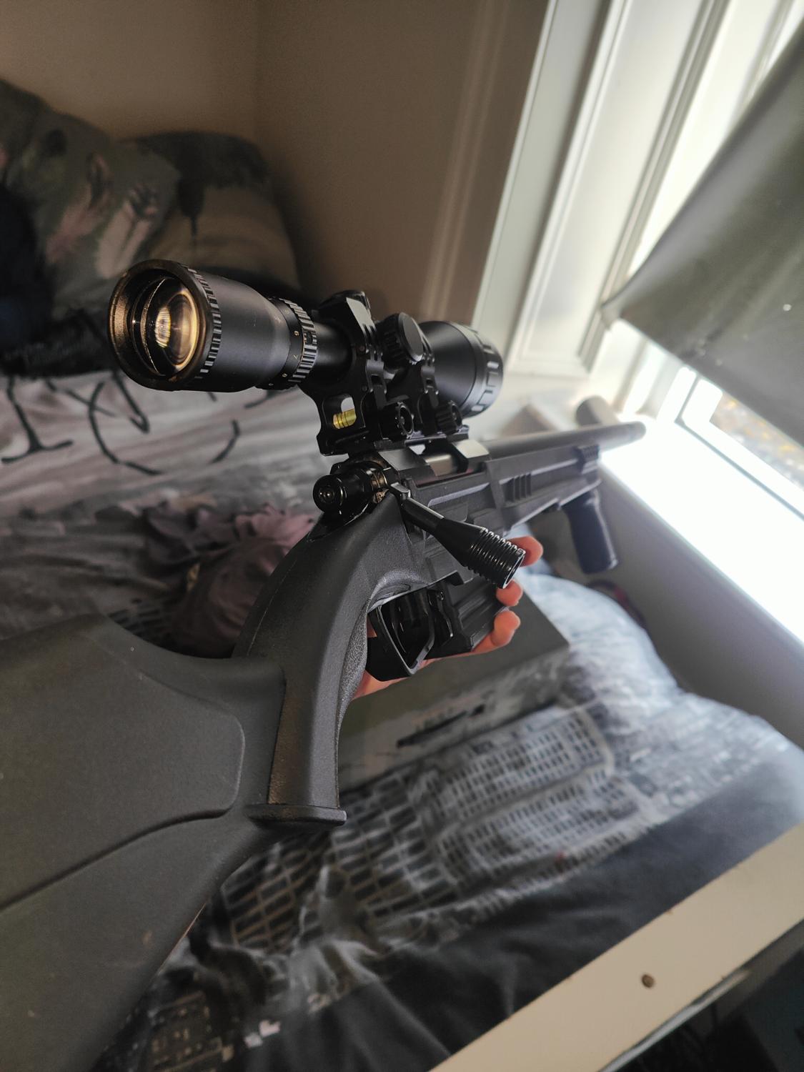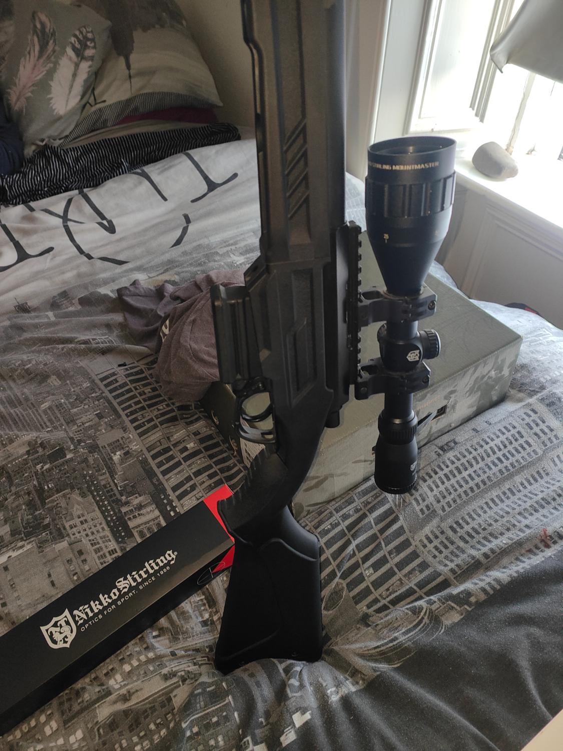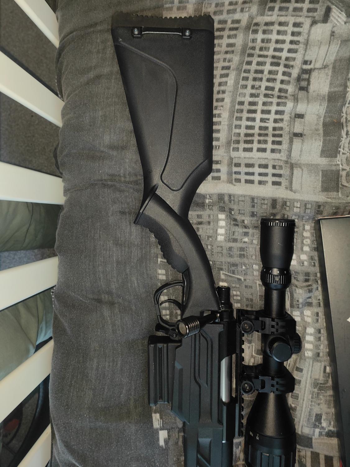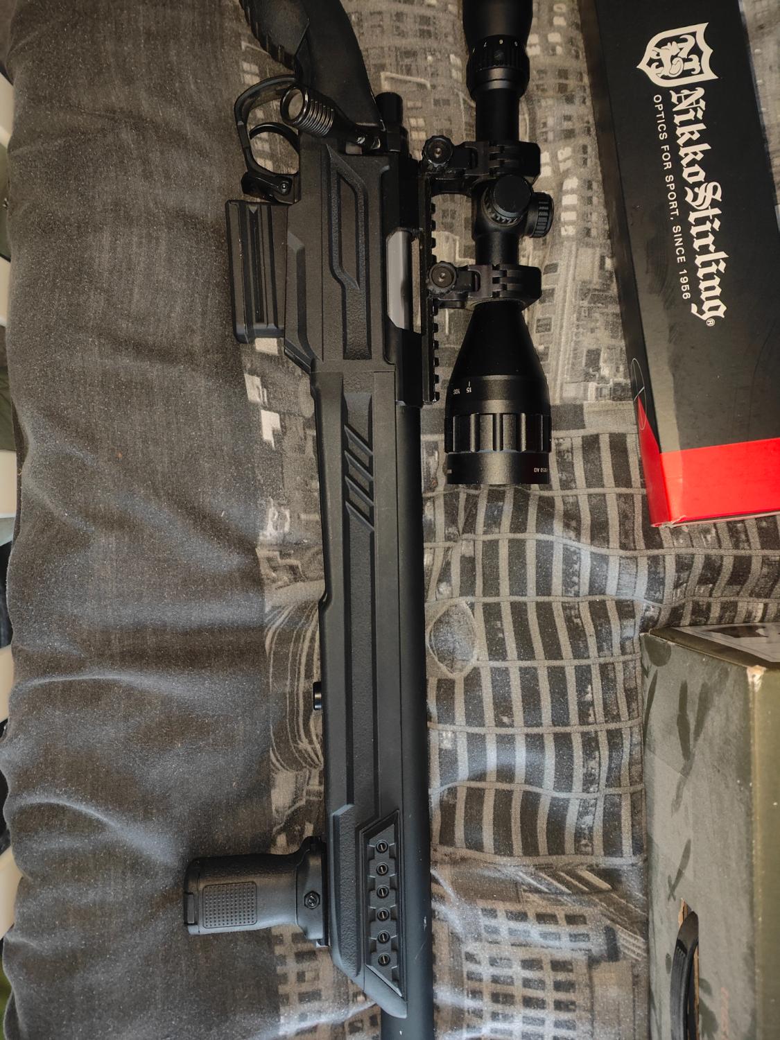 Nikko Sterling scope, Crazy jet barrel, foregrip, Maple leaf trigger, Stainless steel Cylinder, alu piston