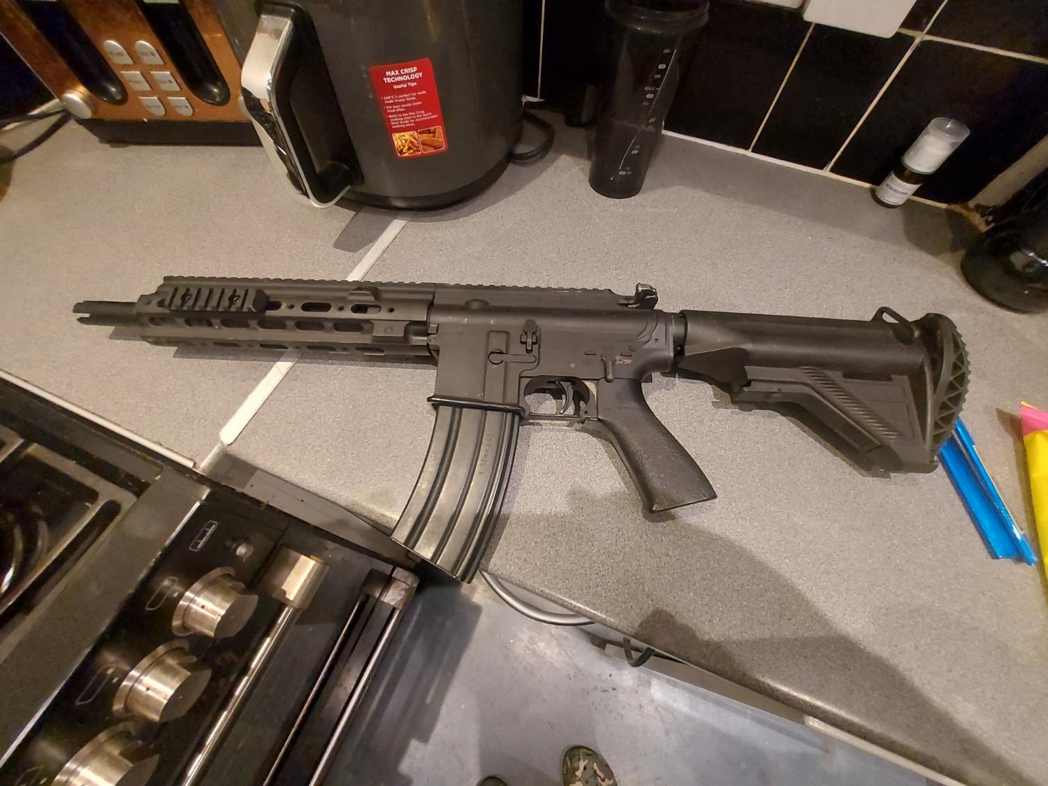 its an FPS piston, prommy gears, an m110 spring (i believe) shs high torque motor,