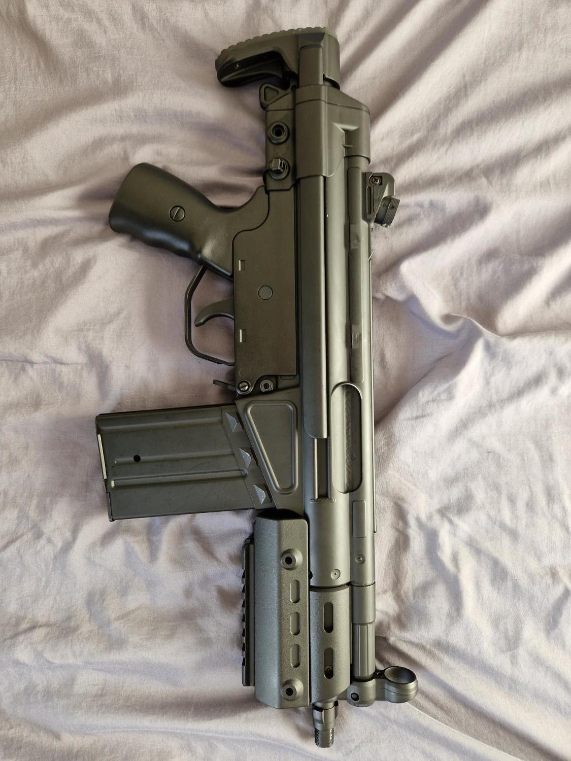 This is my JG g3 sas. It's missing it's stick pins but the stock is held in place by a cable tie for now. Externals are in really good condition. Fps is at 325 on 0.2g bbs. It cycles OK if slightly slow on a 7.4v lipo.