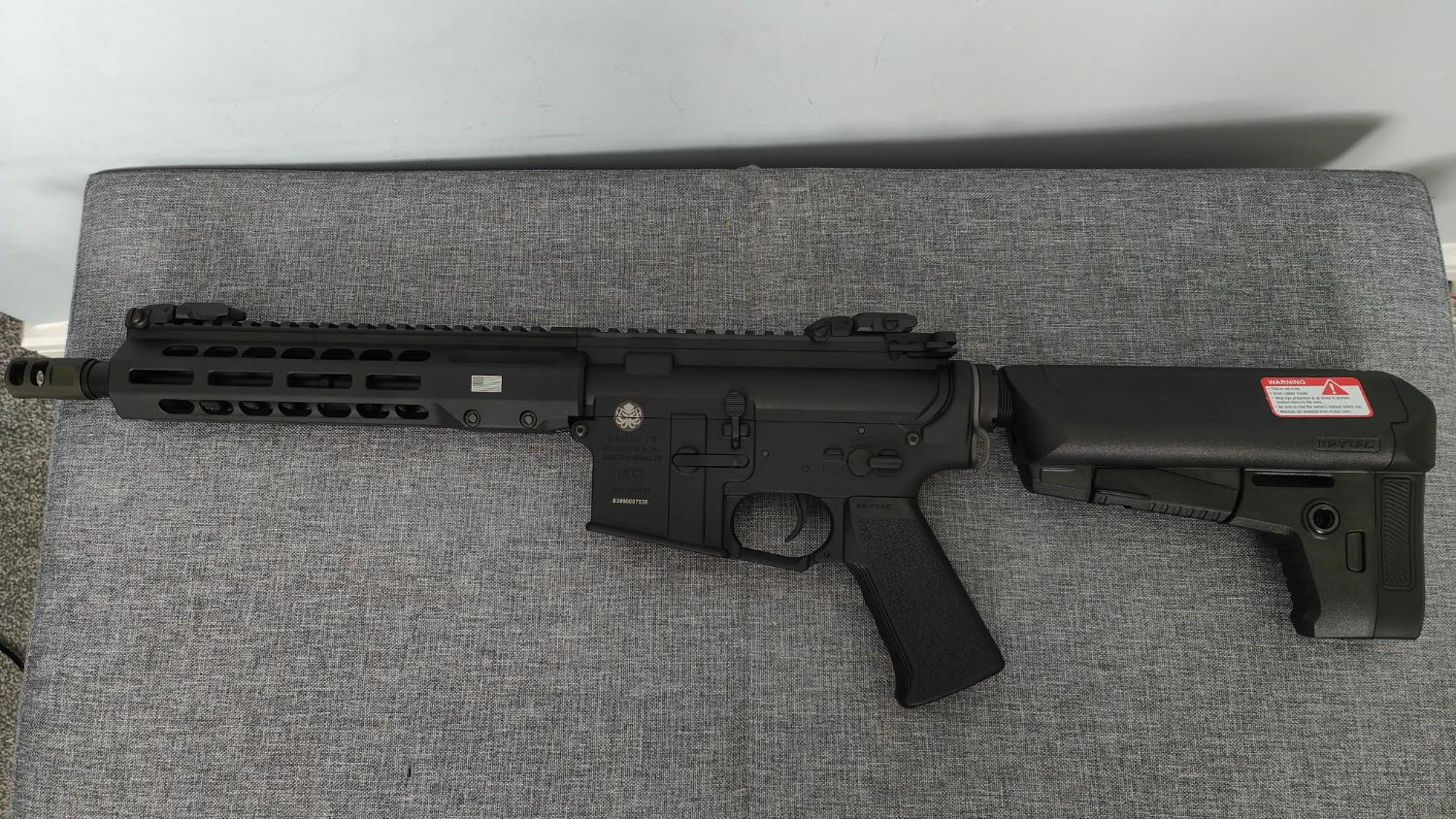 Bought for collection but never skirmished so in excellent condition. Small scratch towards back of receiver as shown in photo. Gun is completely stock. Comes connected to deans. Original mid-cap also provided.