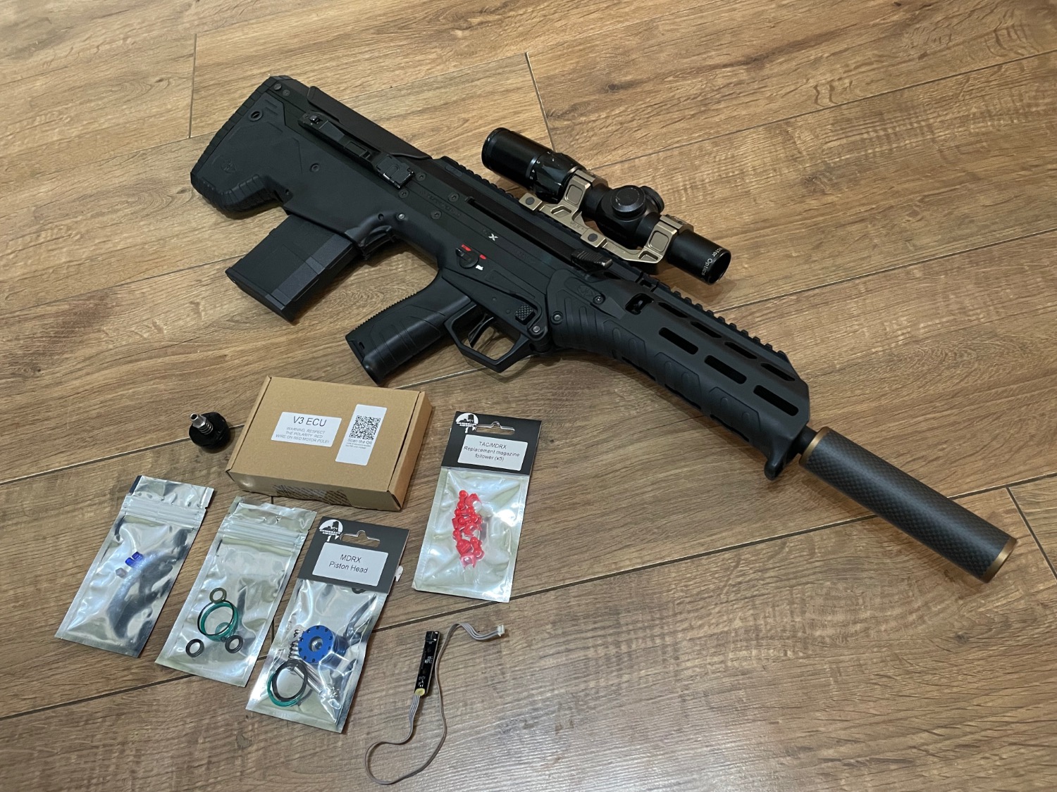 also comes with spare magazine followers, original cylinder head, spare v2 piston head, ecu and spare orings and nubs.