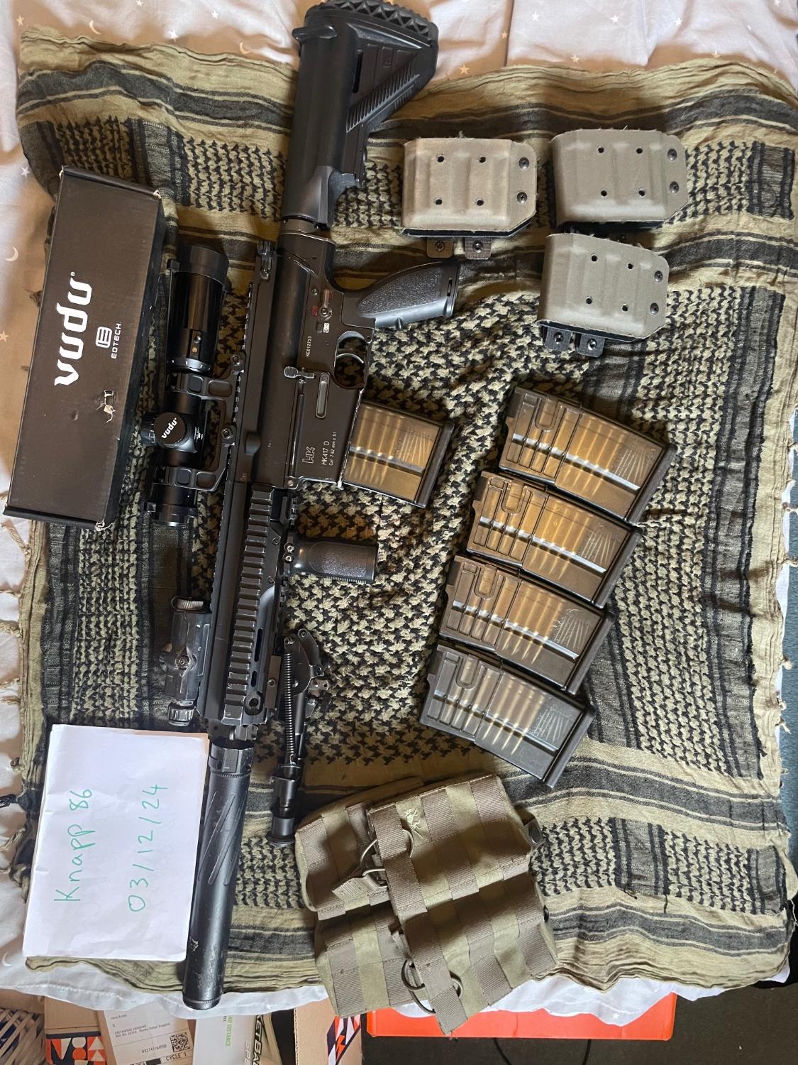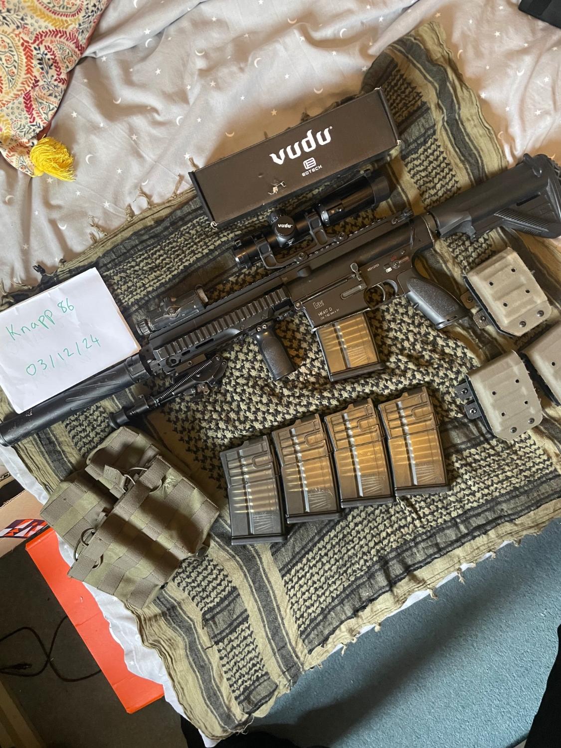 Hi all I’m selling my vfc 417. It’s been a project for a while I never really got round to finishing it and using it so all the stuff I bought for it is basically new. Now I’m almost retired from Airsoft I can’t imagine ever sorting it out and fielding it. All the expensive stuff is done and paid for. There’s a new XT high torque motor in there stainless steel tight bore and maple leaf bucking and nub. A perun inline mosfet installed as its version 2.2 gearbox I couldn’t get a titan or aster in there. Brand new clone eotech vudu scope. This thing is the best clone I’ve ever seen!! 5 vfc mags that are £70 each ? QD suppressor and the gun comes as you see it with all attachments. There’s also some mag pouches 2 double helicon open top pouches and some kydex ones that weren't cheap lol. It think all that needs doing is a new spring and motor hight and it’s good to go. Great package here. This would make a beautiful DMR. £300 plus postage and fees. Will listen to decent offers. Any questions please ask