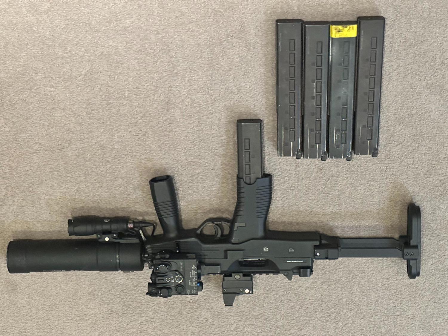 The MP9 Comes with tactical devices mounted like an airsoft mimic DP-Pro, A DBAL, A Wadsn M300a, all functional. Modified with a Airsoft Artisan retractable stock. It also comes with a mock suppressor, metal one. The MP9 blank firing is fine, and works as intended, but when loaded with BB at not too cold temperature it starts to have feed issue. i.e. the bolt does not goes back enough. I am quite experienced with GBB but the internal seems no issue. I checked the seal and everything is fine. I gave it to a local retailer they say its common issue and ask me to HPA it. There is a spare steel disconnector available. The disconnector seems to be a fragile part in KWA mp9. I swapped back to factory disconnector only because I want to make sure its not causing the feed issue. (Note: the BB feeds fine if the magazine is at high temperature, but as skirmish progress it does get cold and get that feed issue. It may really be a common issue with the KWA mp9 I'm not sure)