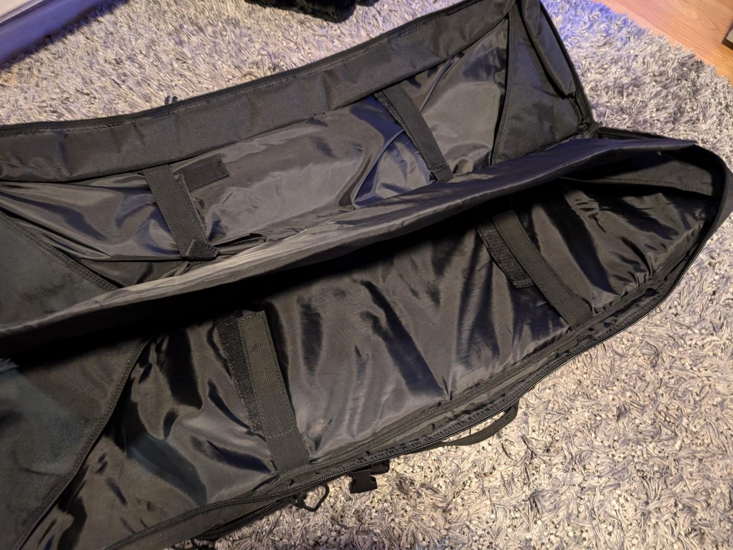 Small smg style compartment with loads of other pockets etc all over . Very sturdy .