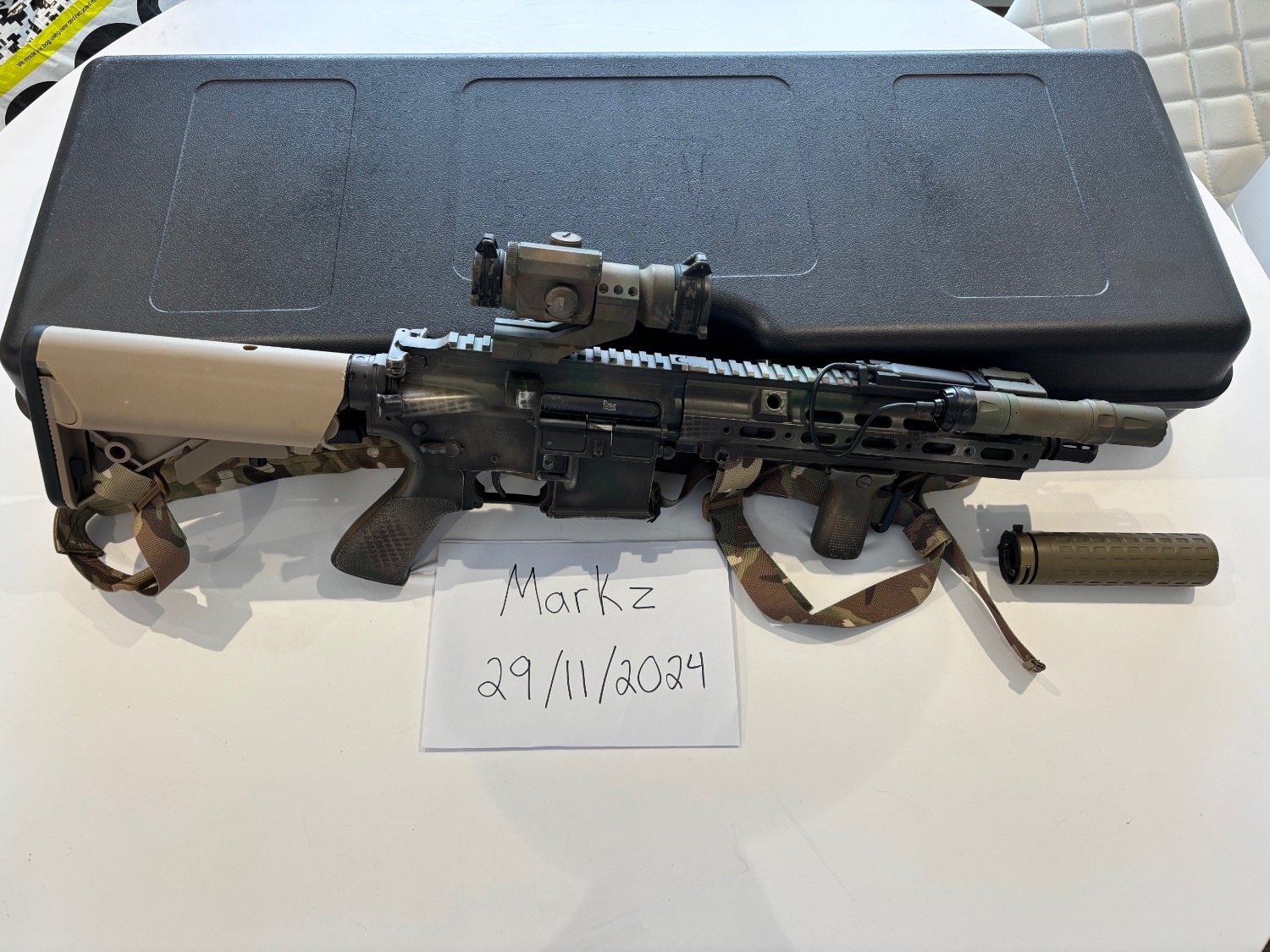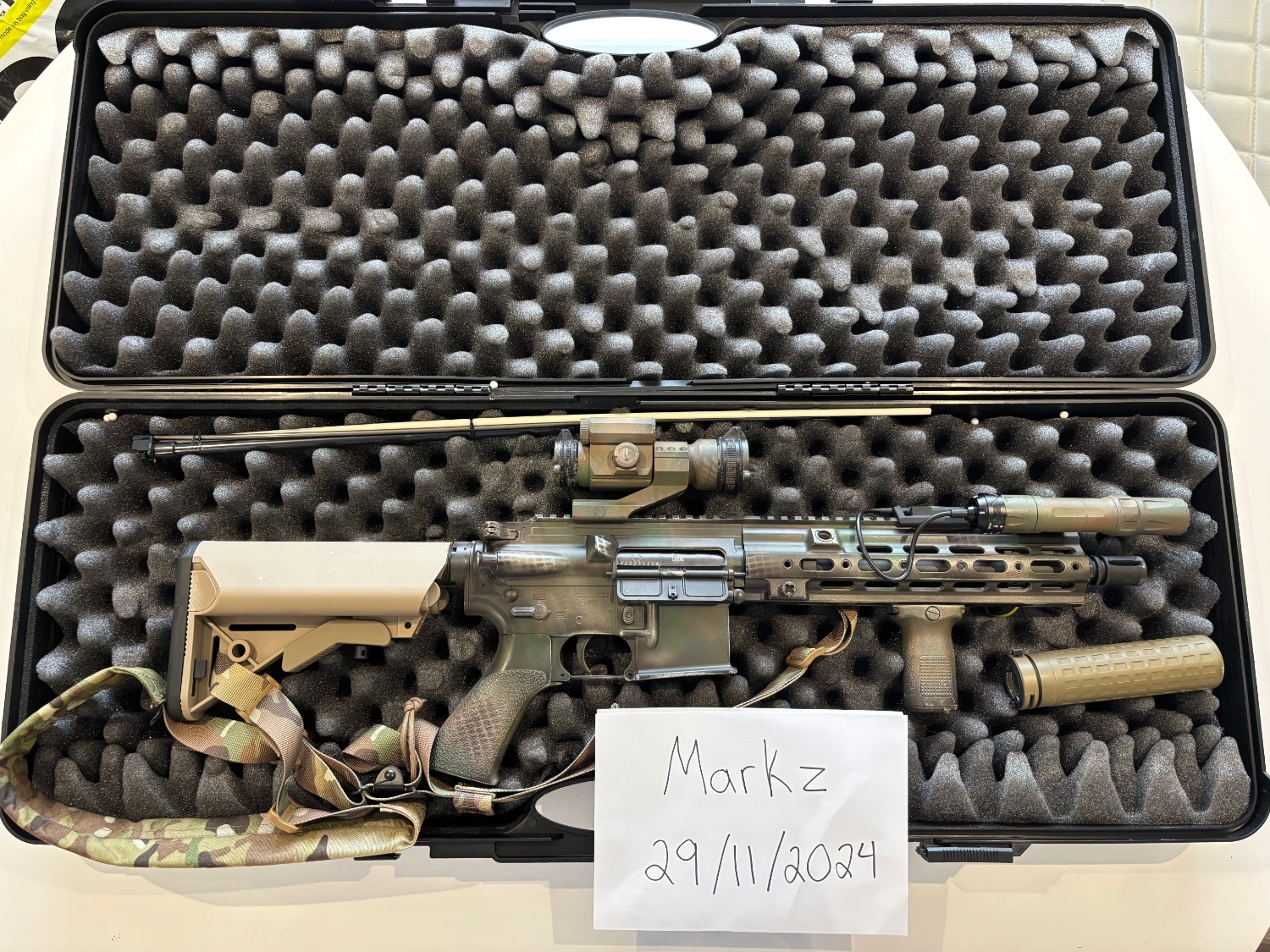 Selling my TM 416 NGRS which has been fully done up by Sam at Kingdom of Airsoft. Works flawlessly, is in very good condition, and is a dream to shoot. It has recently gone in for servicing annd has been internally cleaned. This was mostly used at Bunker51 for indoor use and is powered for indoor use. However, would be very easy to change out the spring and take it outdoors if you’d like. All externals are included in the price and a full parts list is included below. I am sadly selling this as I am moving and wont be able to take this with me. Package can also come with 7 Mid-cap TM mags if you’d like as well as the Nuprol Hard Case in the pictures. If you have any questions feel free to ask!