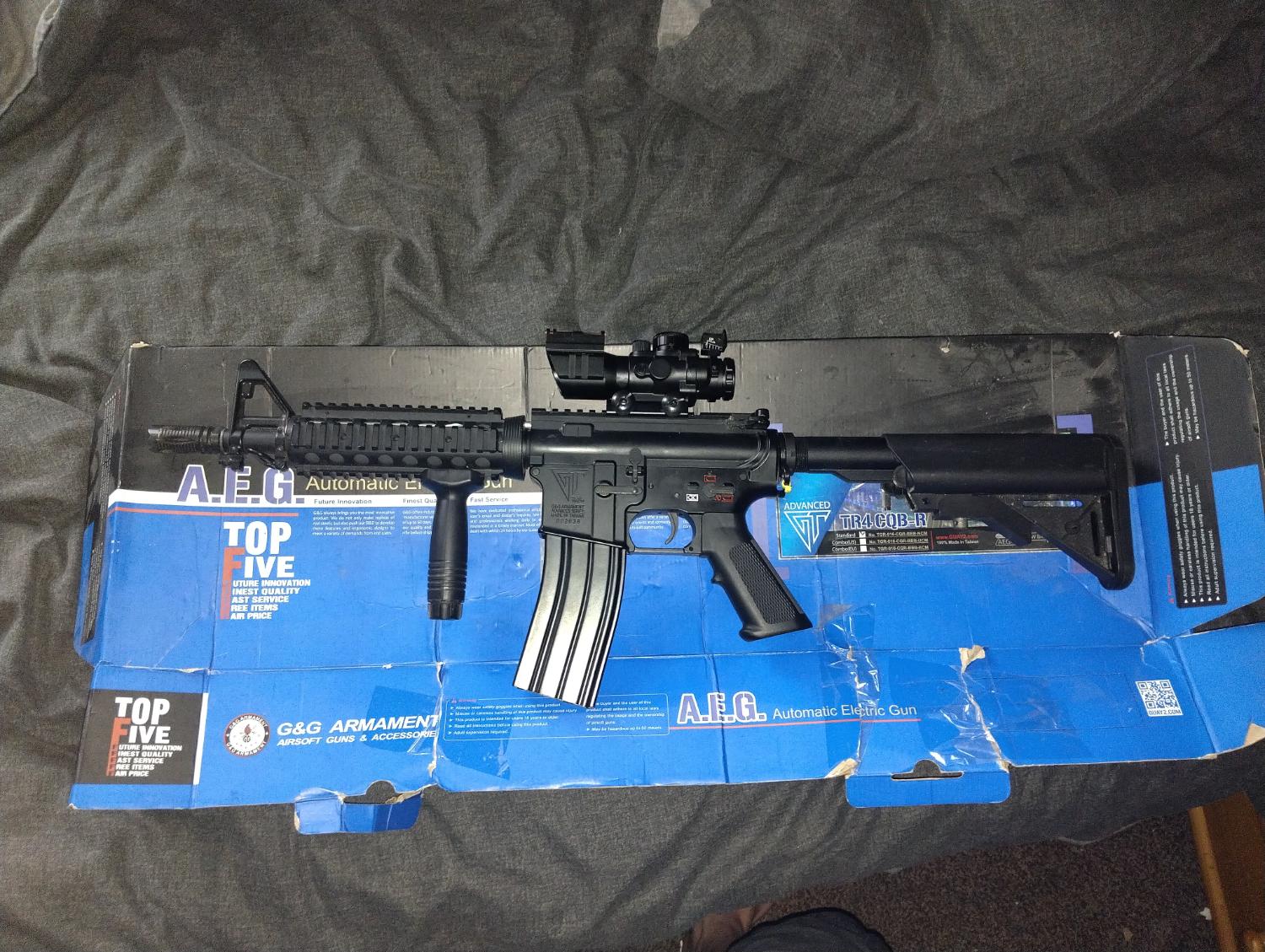 4 Mid cap mags, scope, vertical grip