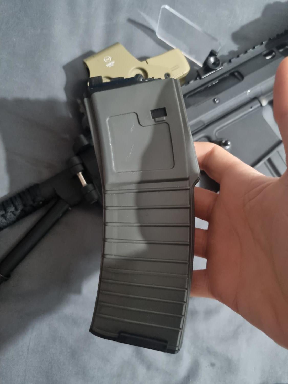 1x Lens Protector 1x KAC Mag (Leaking Slowly) 1x Theta Optics Holo 1x Unknown PEQ 1x Genuine MAGPUL MOE Foregrip 1x Viper Tan 2 Point Sling 1x Anti-Freeze Nozzle