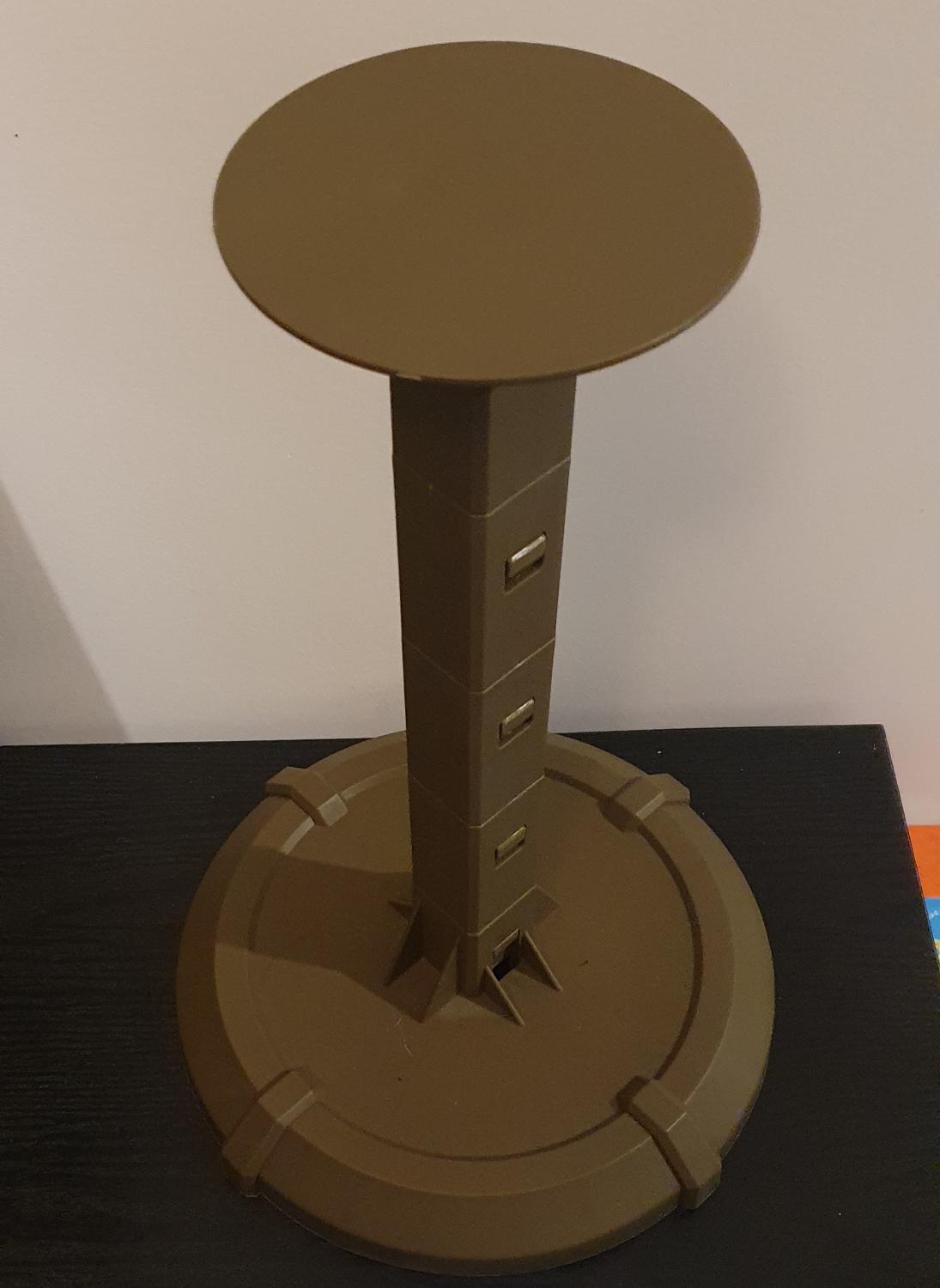 Constructed from plastic, but is good and solid with no creaks or wobbles, had my 2.5 kilo helmet set up stored on it for a fair while with no issues.