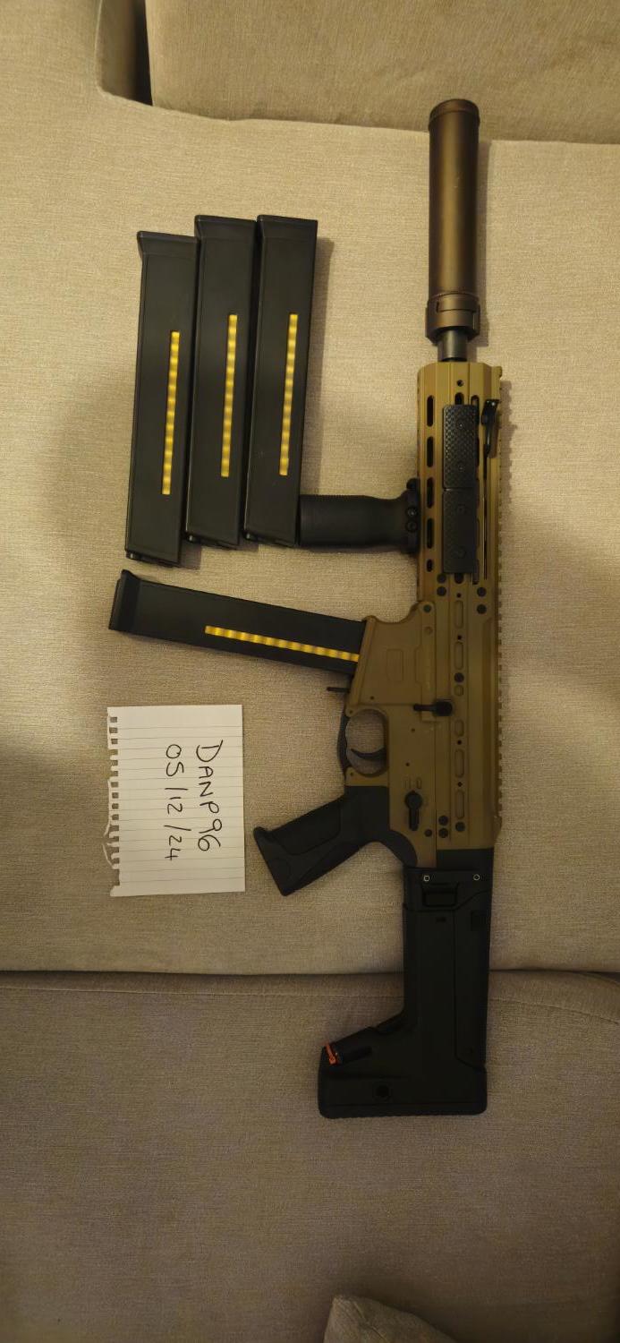 Used for a few games as a spare, still impressive performance. Will come with qd suppressor and flash hider as I lost original thread cover, 4x mags that fed well when I last used.