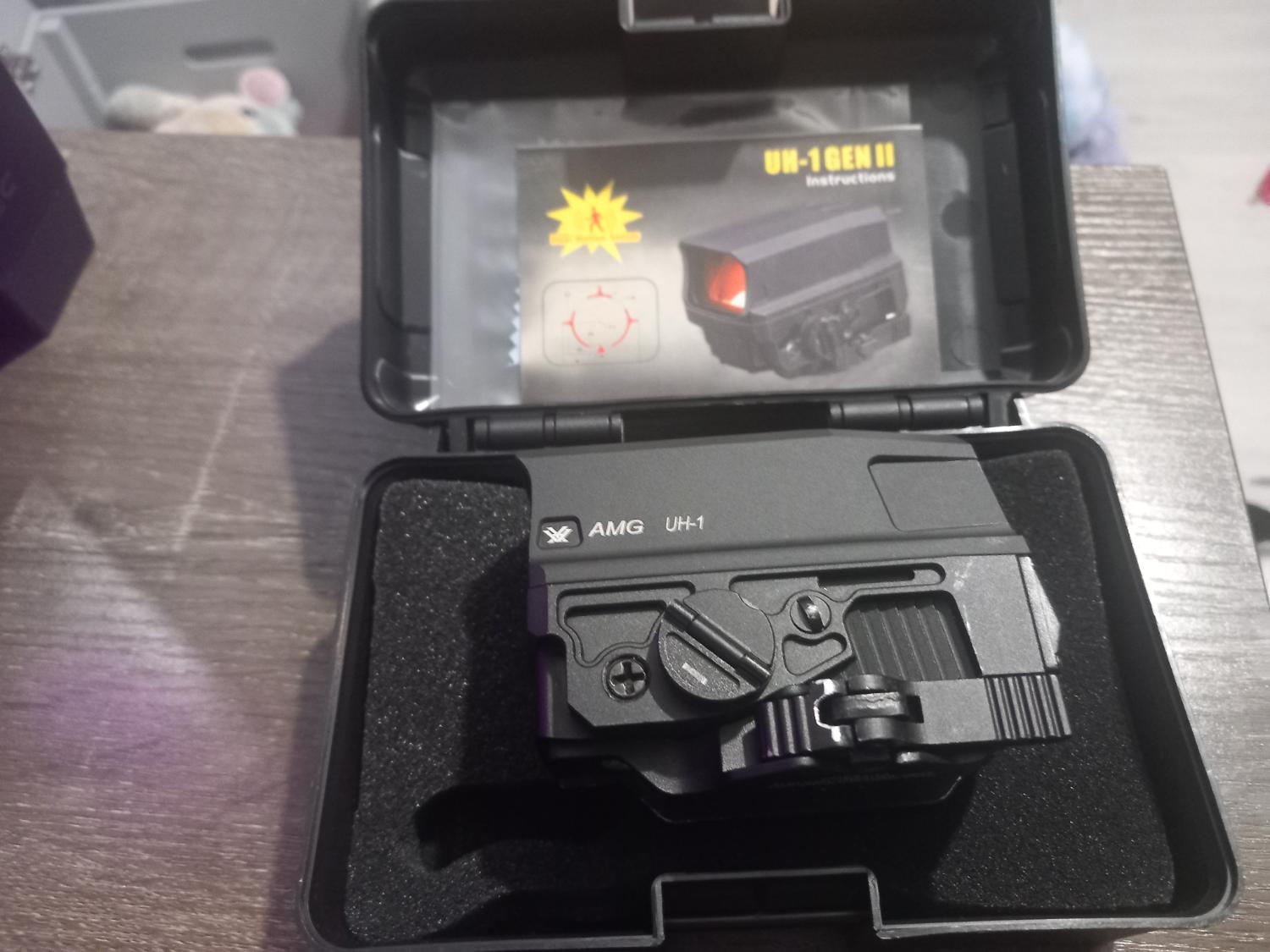 Unknown brand UH1 holographic: great sight and looks nice on almost any rifle does have some scuffing on the quick detach latch, cannot test the reticle as I have no batteries for it but worked perfectly the last time I used it £30 + postage