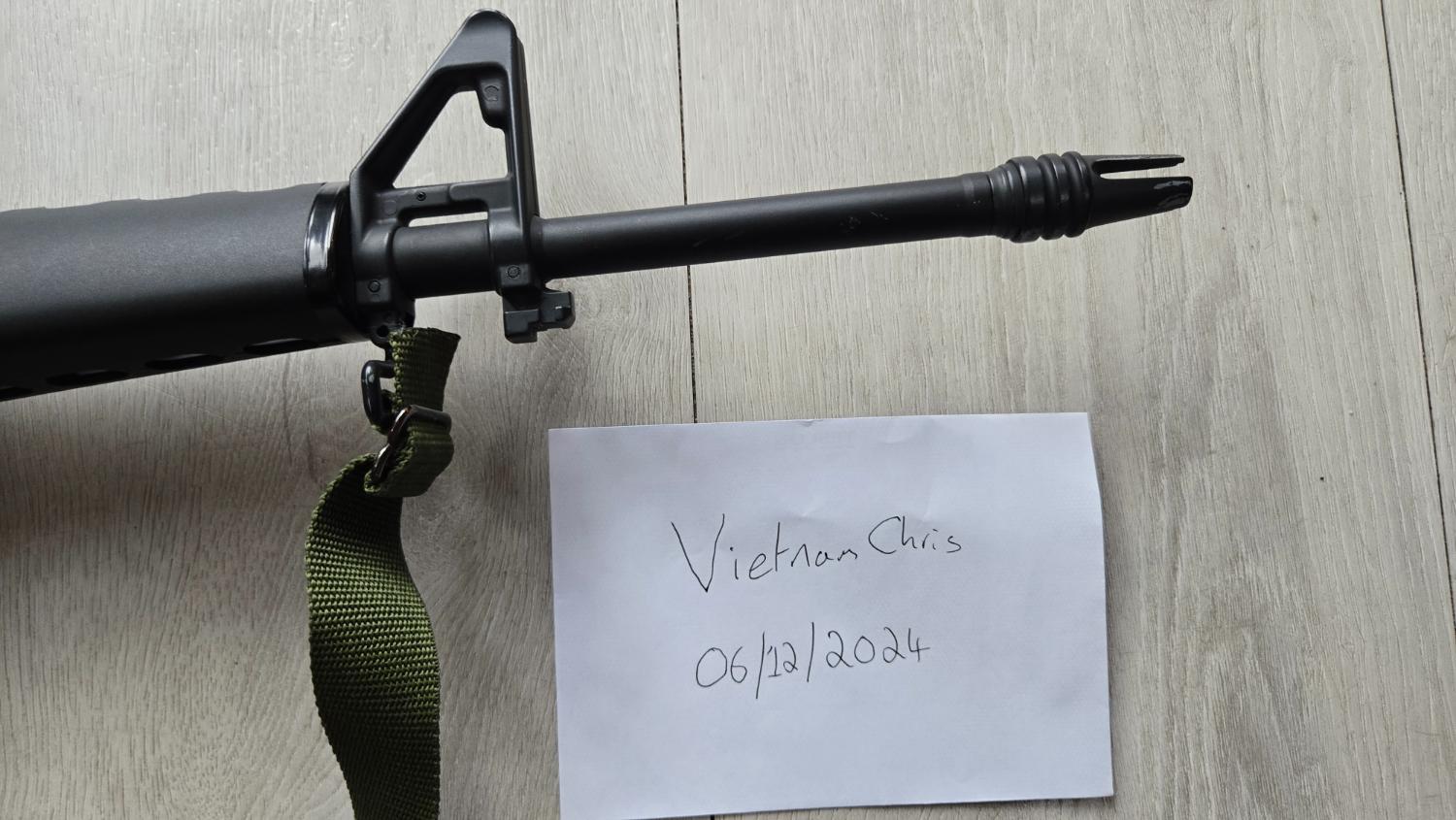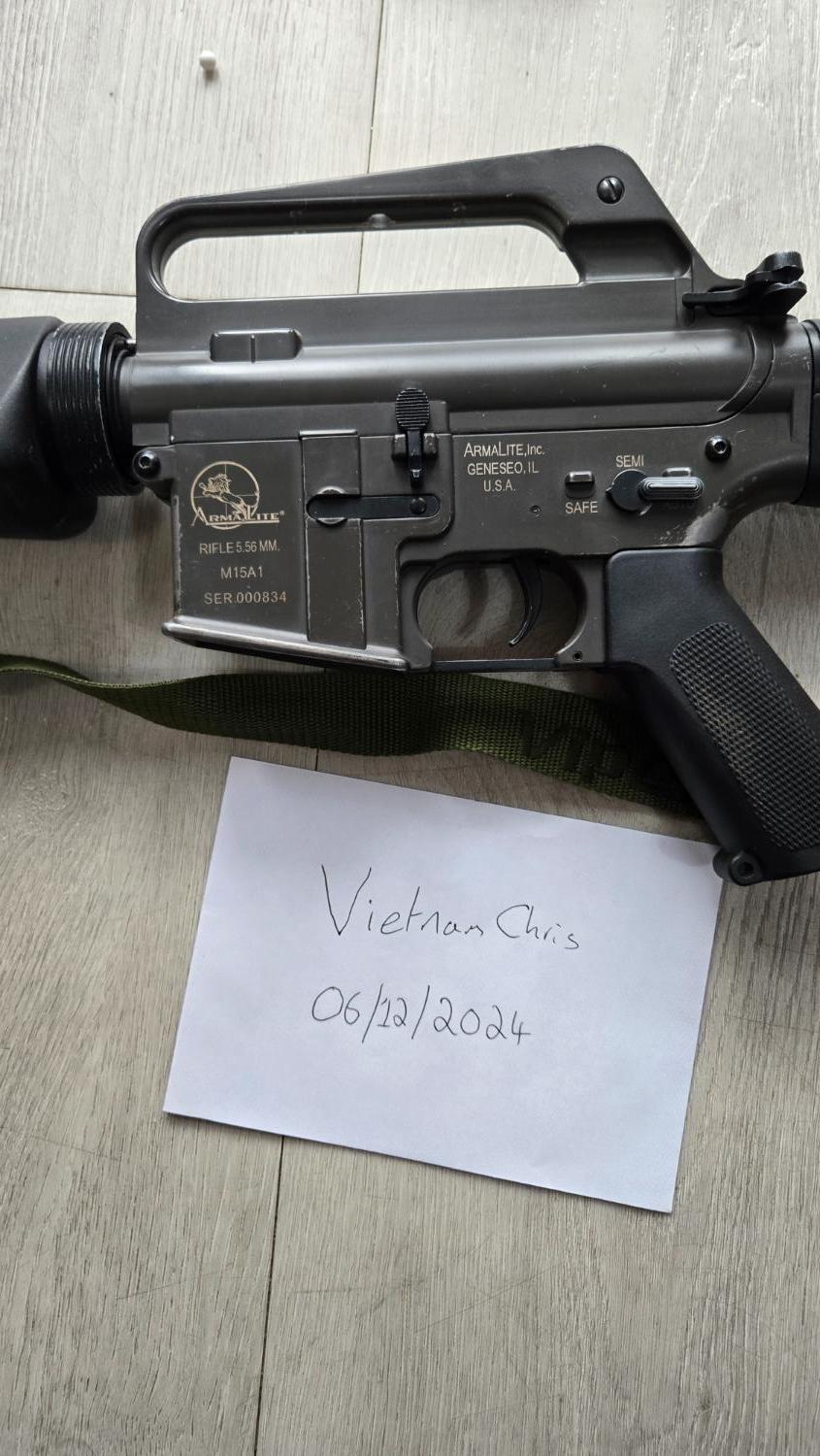 The rifle itself is aeg and works fine, was silicone greased before storage but I would suggest some lubrication and tlc might be in order before going airsofting with it for the day! Paint is a little worn in the usual places you hold the metal but laser engraved Armalite markings still look good and stock and foregrip all solid. Vietnam style has the triangle shaped foregrip, iron sites and 3 prong flash hider and a full stock for a big battery!