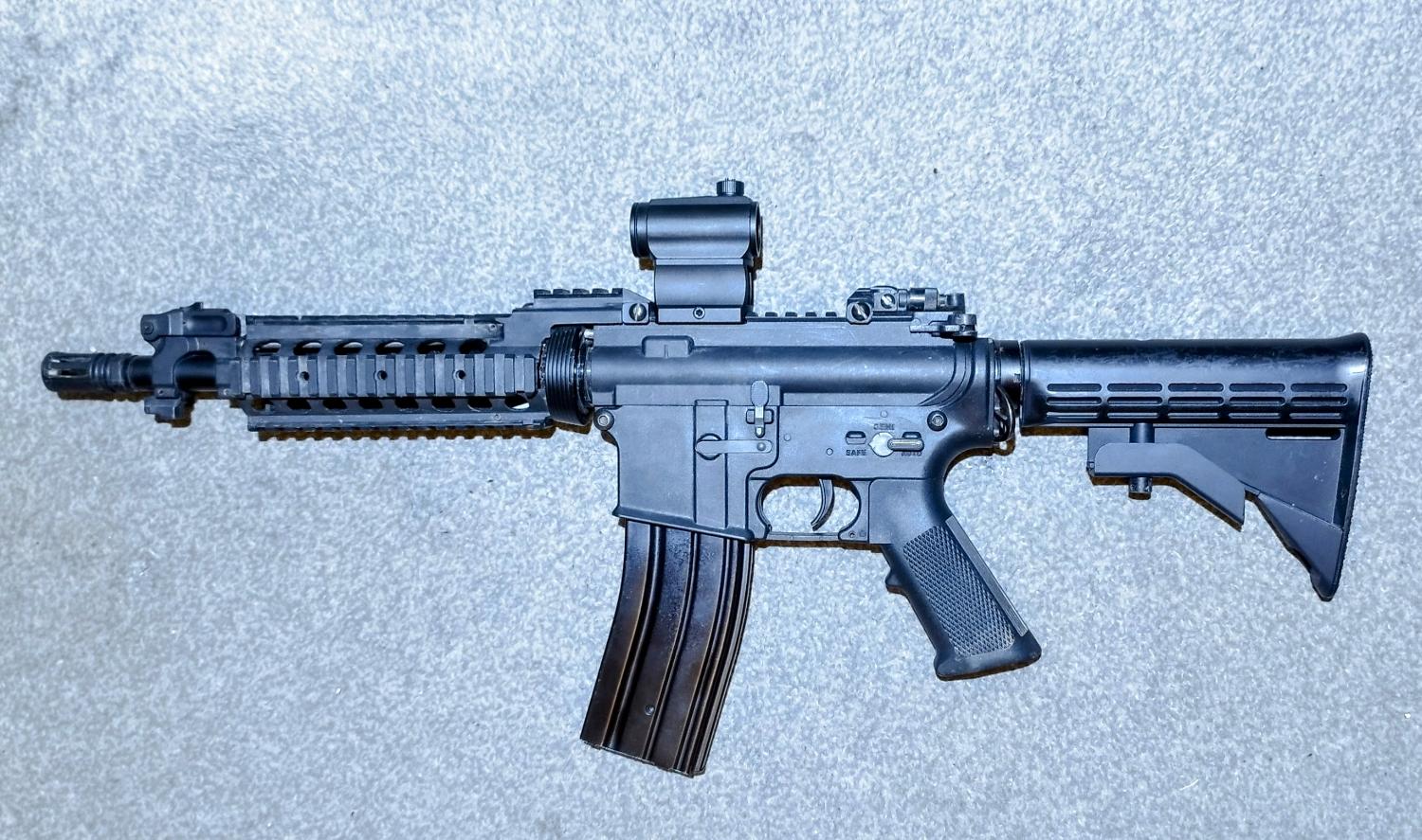 The gearbox is a good one as it has quick spring change a micro switch trigger, full metal teeth piston. It has a steel barrel and H type hopup rubber. It shoots about 290 fps.