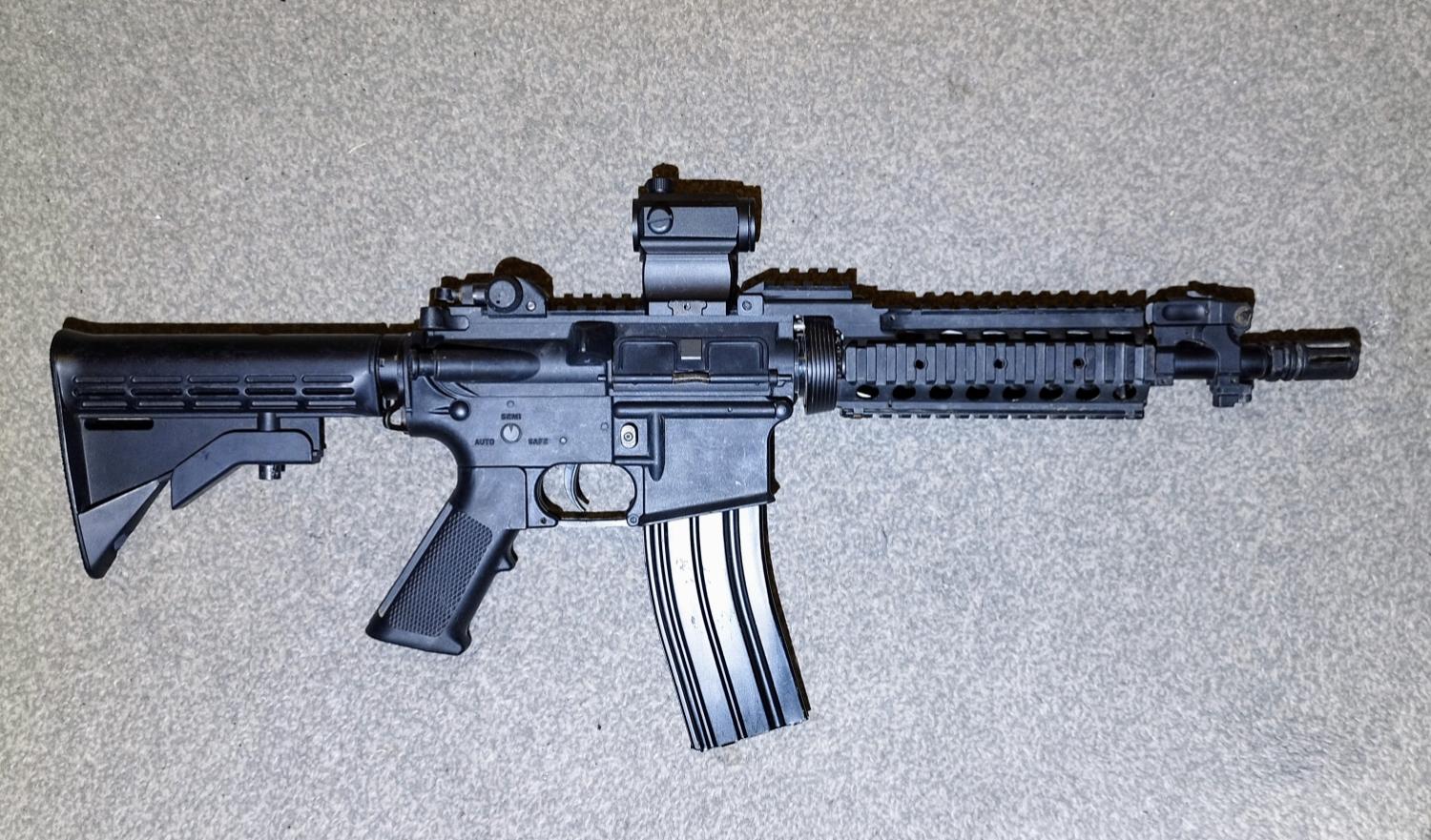Comes with all in the pictures including the red dot. But unfortunately it stopped working, you can still use it to acquire your targets.