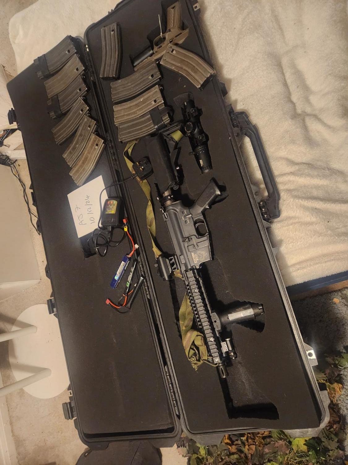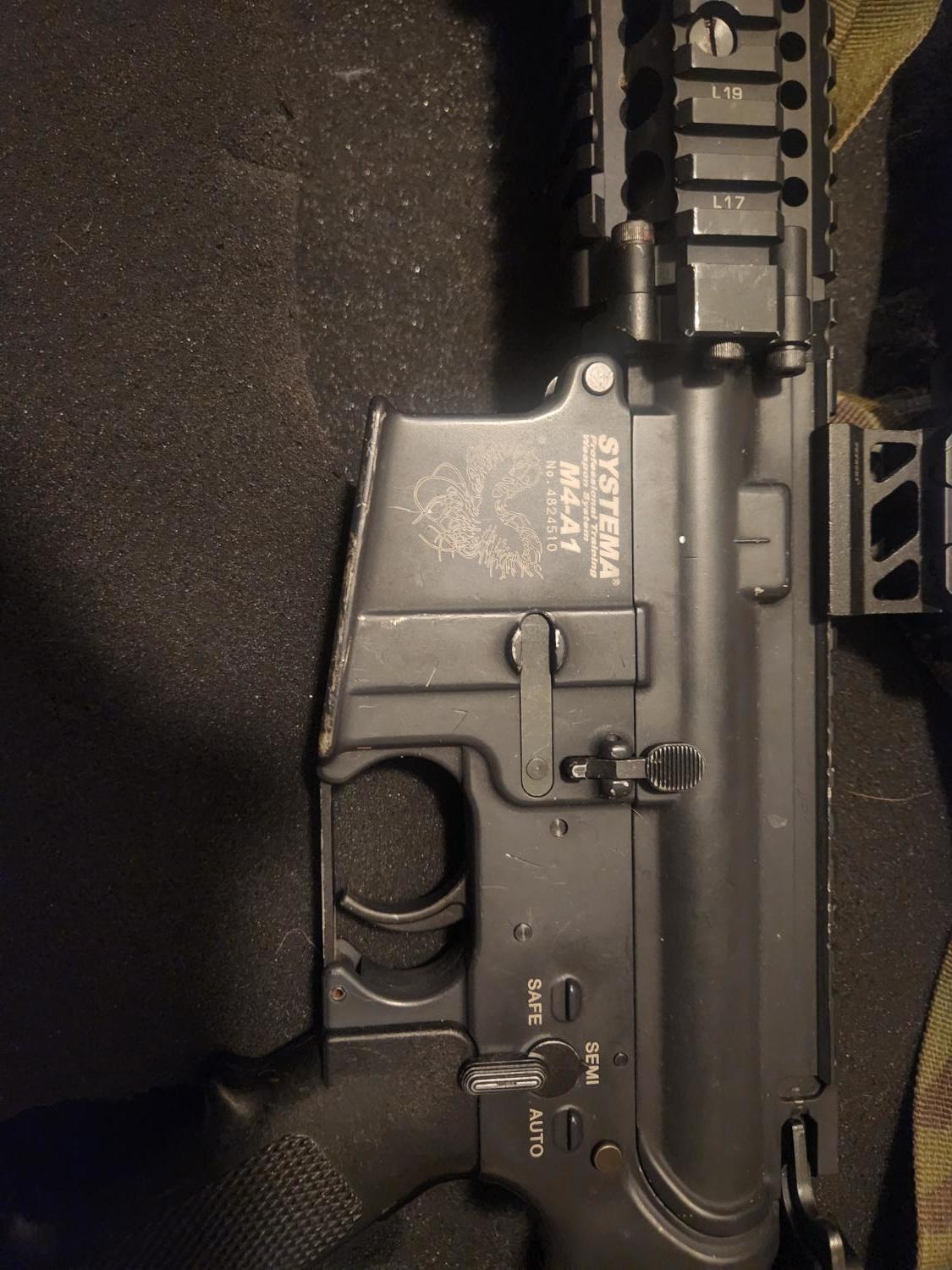 I'm so reluctant to let this one go I paid £1200 for this RIF then another £677 on getting it right barely used since having everything serviced I'll paste what I have had done and the comms.. the best RIF I have ever used by a mile any questions please ask these are not for new airsofters. Comes with torch red dot a scope 11 mags these are £60 a pop and a fully authentic peli case real daniel defense rail from a real M4 any questions feel free to ask. Shoots better than anything on the field by a mile I will post below the work I had done this is my comms with tac.