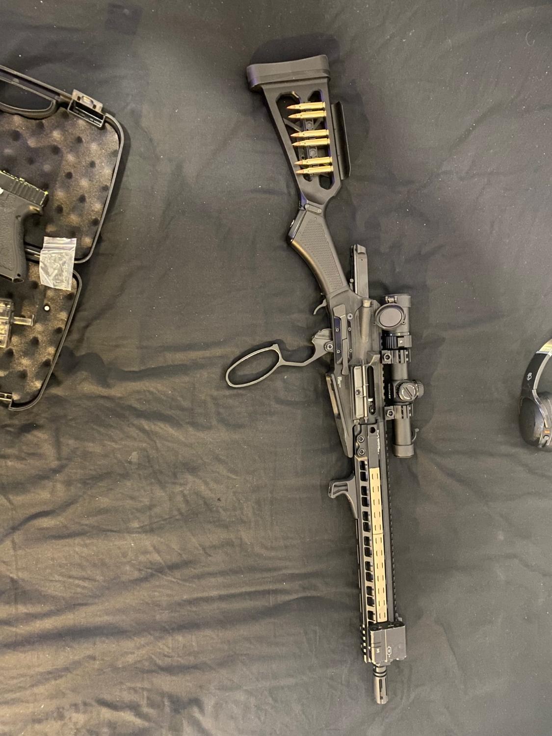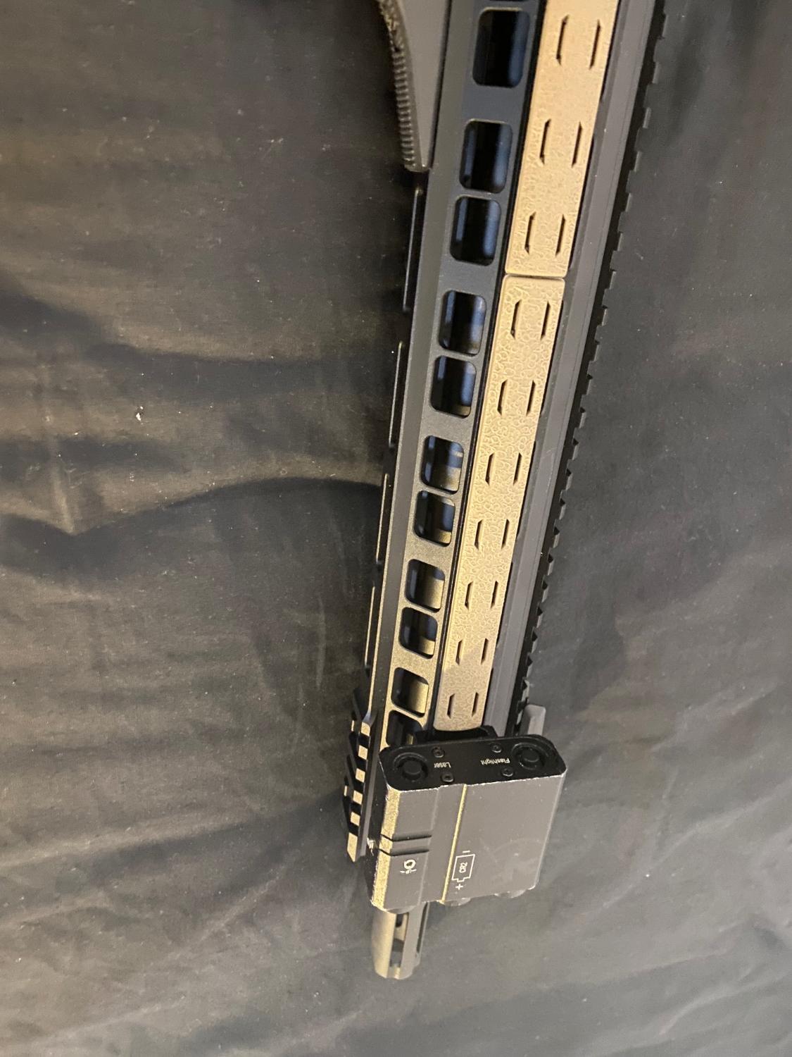 Firefield laser light combo, mlok rail panels, nuprol sniper scope, handstop