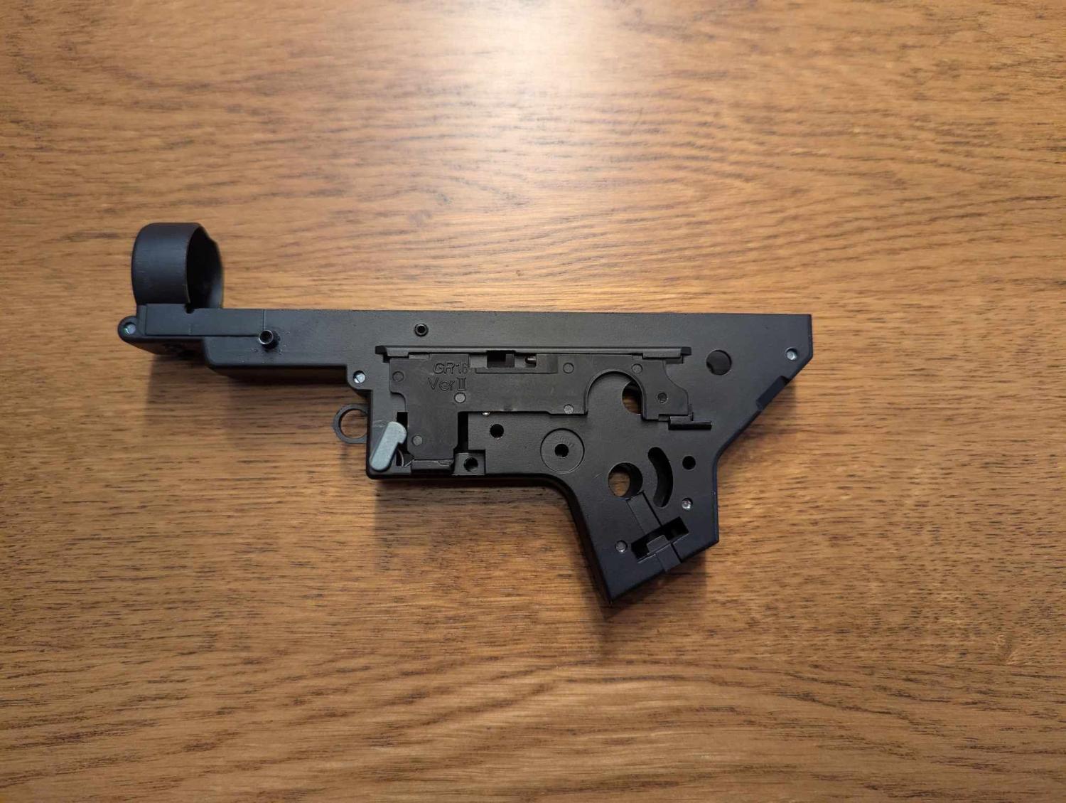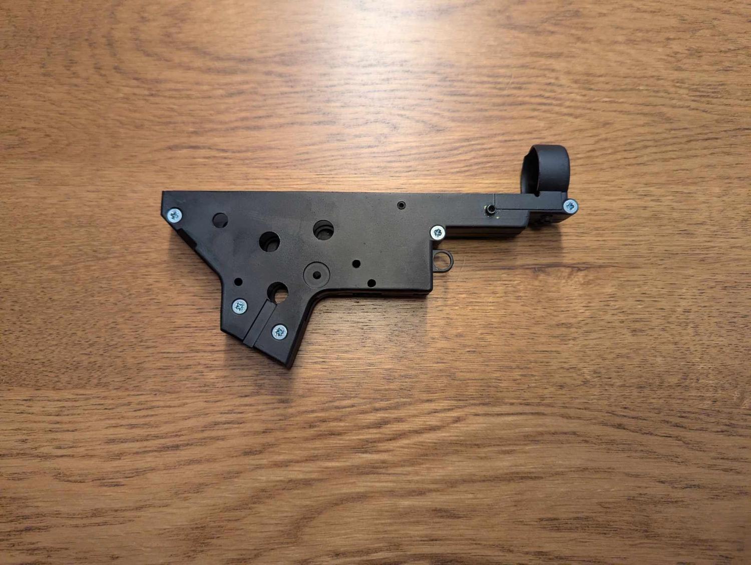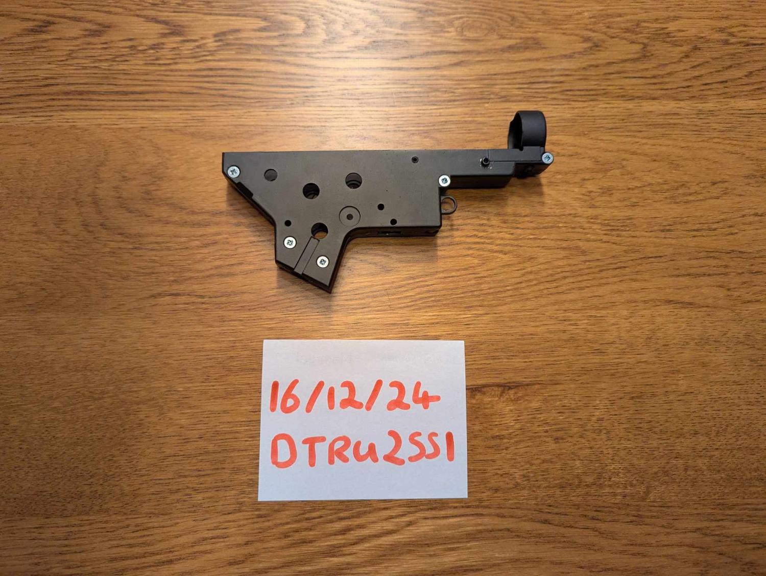 Airtac customs CRBN gearbox V2. This is a cut down weight reduced gearbox to take polarstar engines . Made from V" gearboxes and have all the necessary holding screws for gearbox alignment and to centre and hold the engine securely. More info on their website below, the same thing but they have no made more cutouts in the body. Selector plate will remain on the gearbox but not the safety cut off. Will listen to sensible offers on this