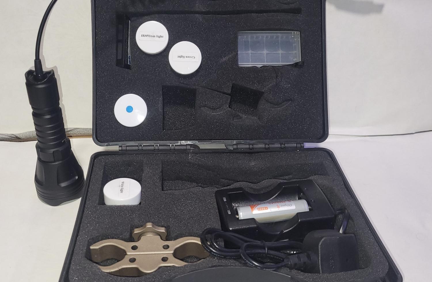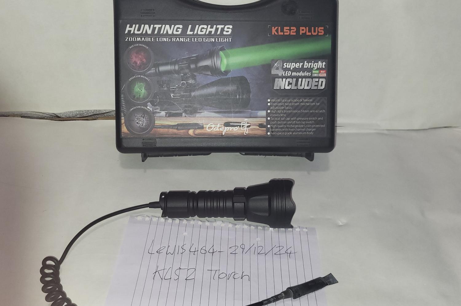 Kl52 Hunting/ Gun torch. Comes with 2 usbc rechargeable batteries, multiple LED modules.