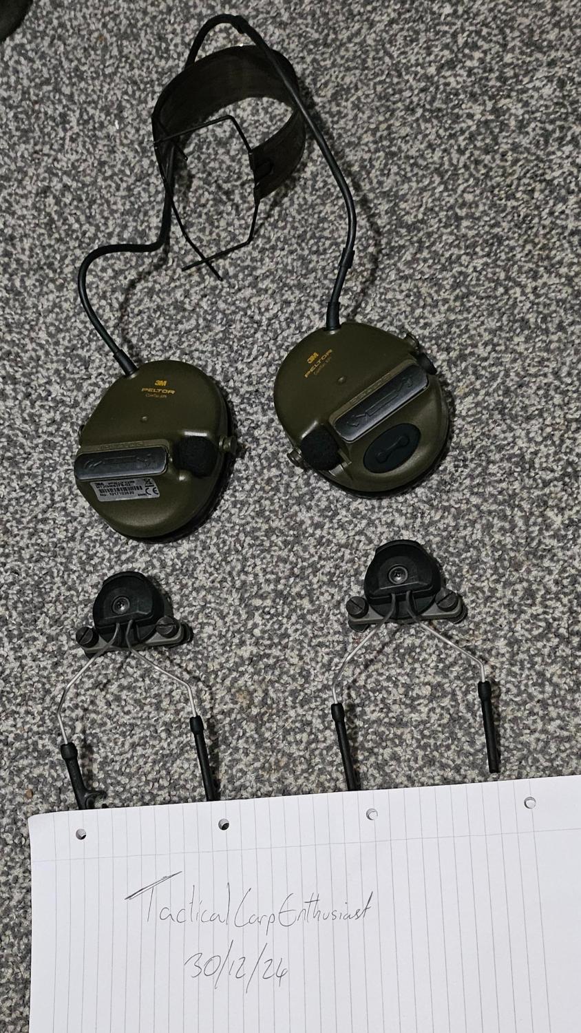 For sale Peltor Comtac XPI and FMA Wendy style helmet mounts, all in working condition. Comes with original head strap although does not have leather covering as this had to be removed for the headset to be disassembled.