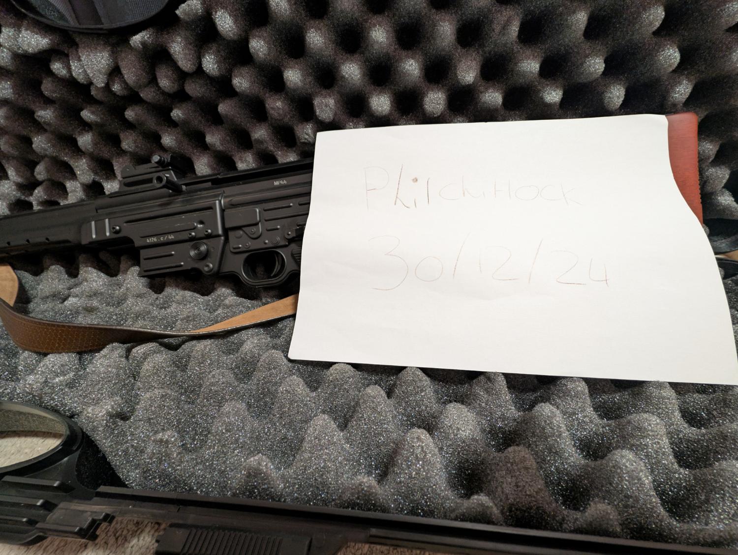 Comes with 3 hi cap mags, repro leather sling, 6 canvas mag pouches and original box.