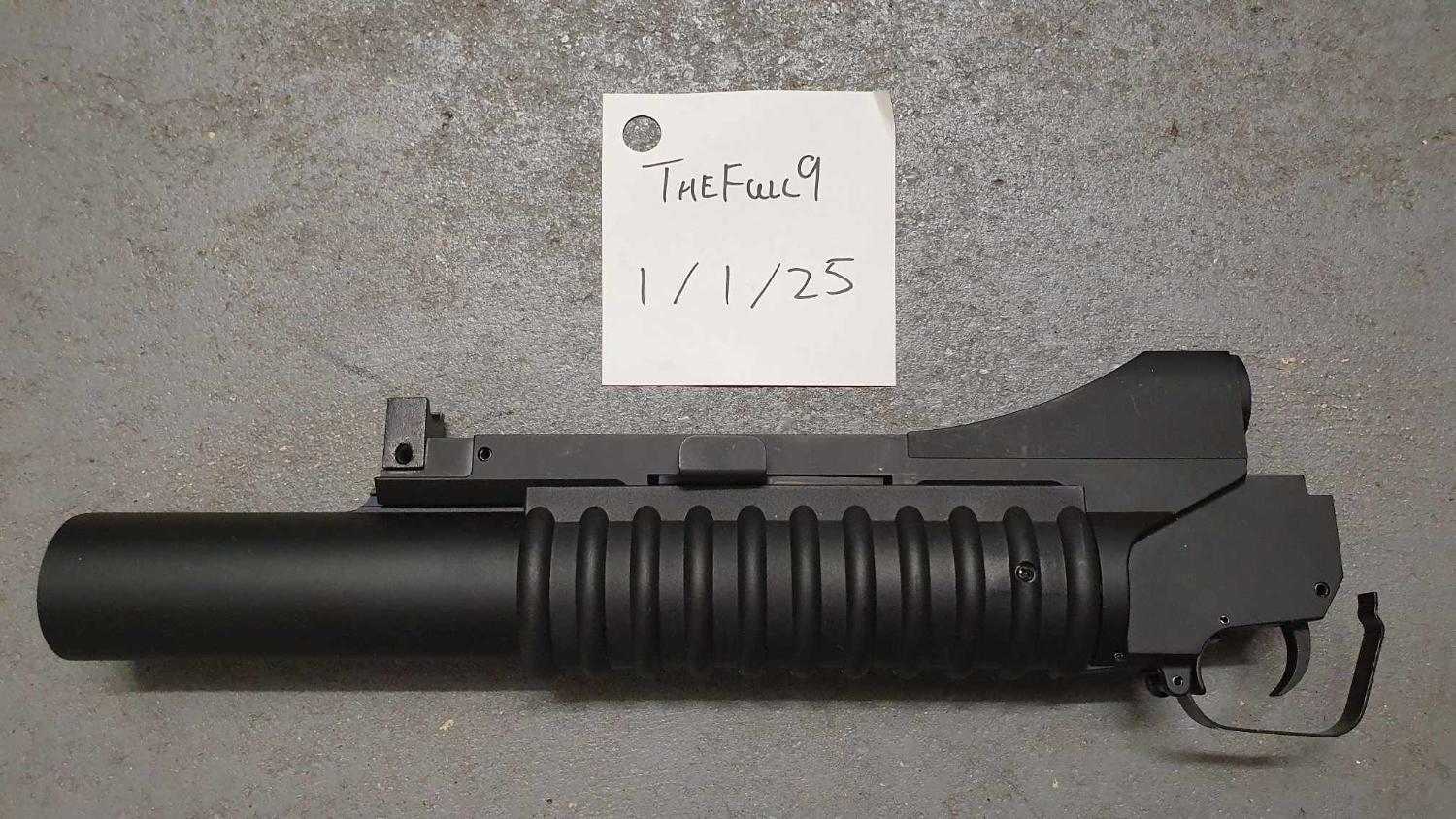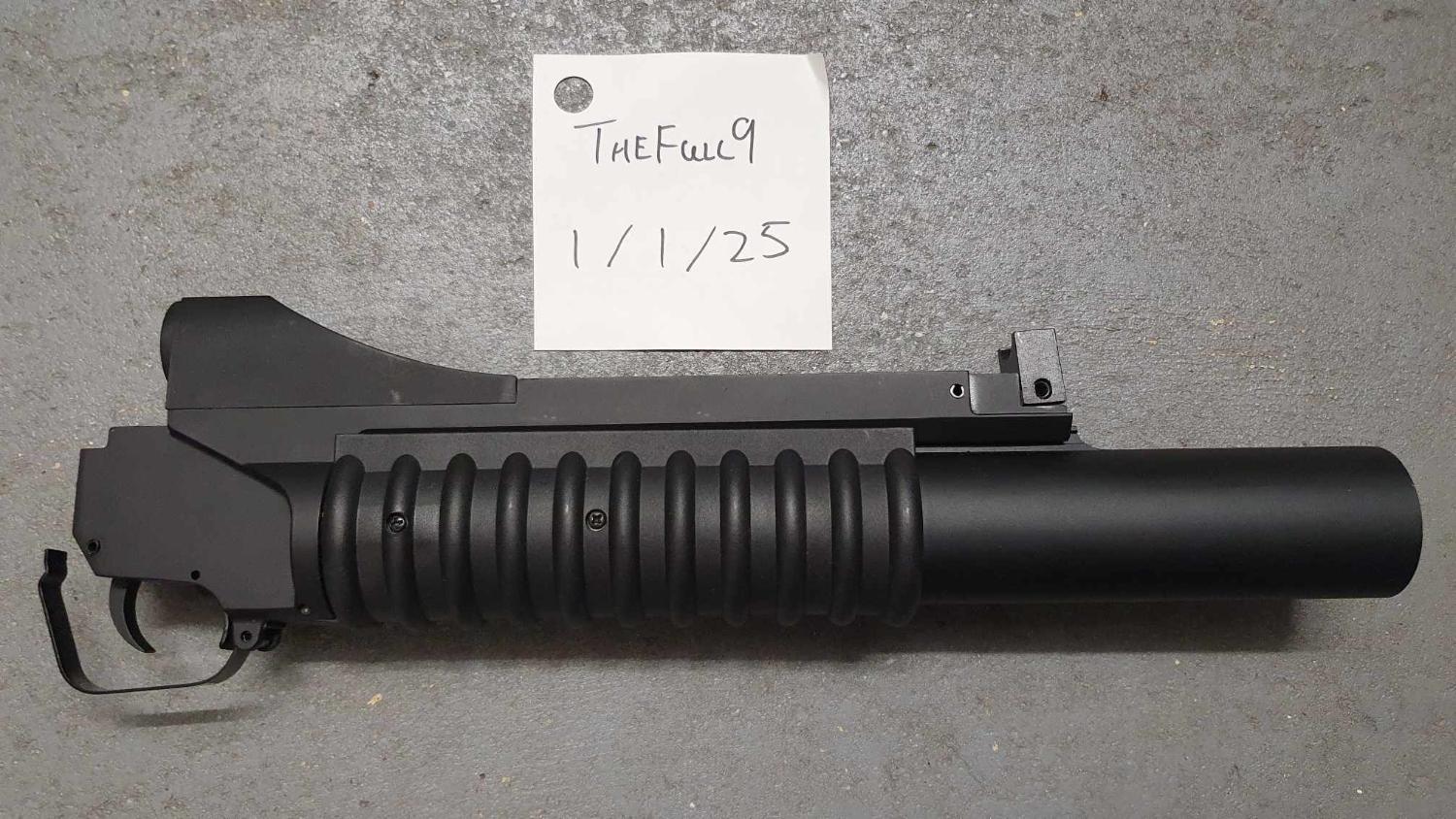 Never used, owned briefly for photo posing then replaced, has some mild scuffs in places that will be hidden once mounted and the fitment between barrel and receiver is actually pretty decent; very little wobble compared to other 203s I've had. Can be rail mounted if you can get the right E&C clamp, otherwise to barrel mount you'll need to get a front bracket (hence the low price). Can't guarantee which brands this will fit on, you do of course need the correct barrel nut type and cut-out/diameter of outer barrel for proper military M4/M16 mounting.