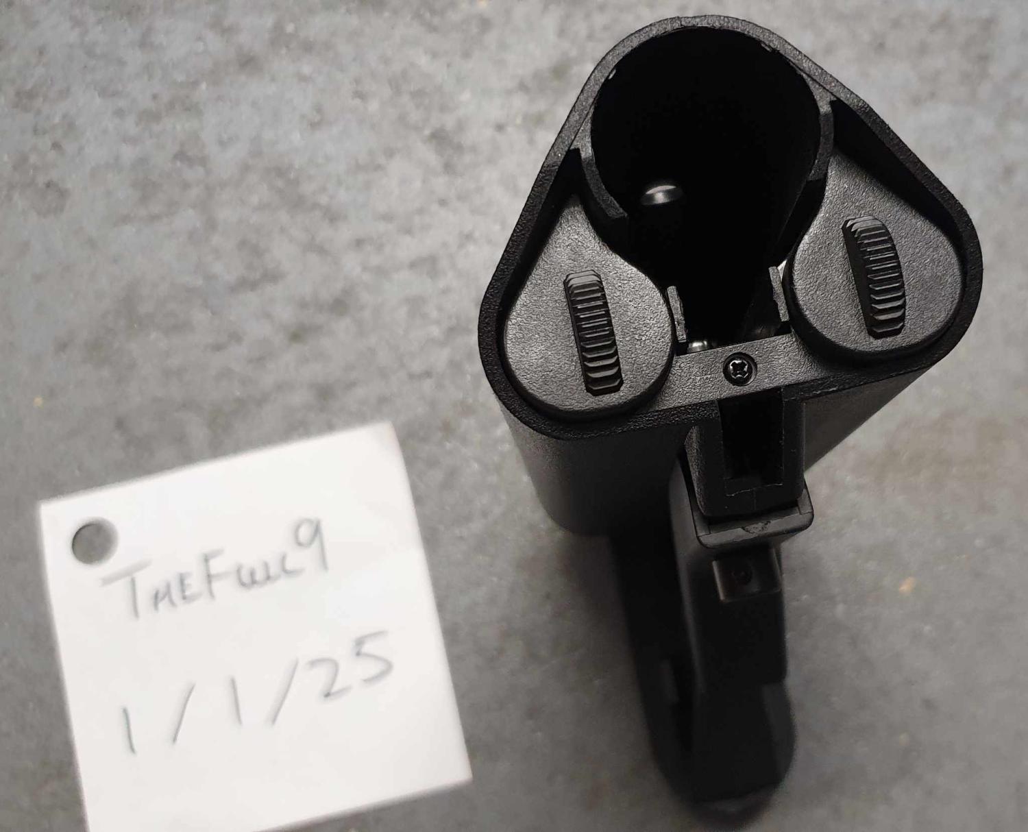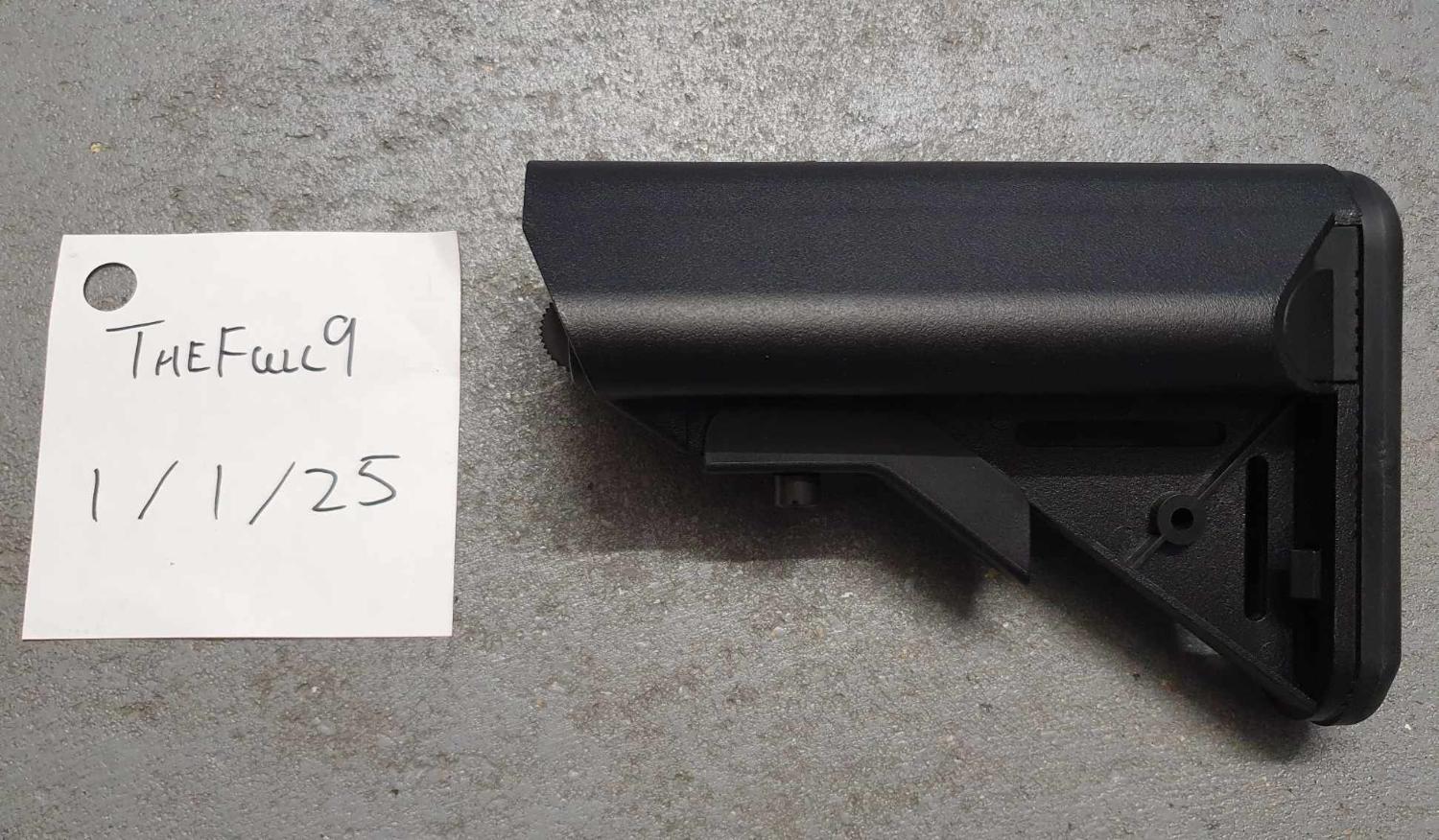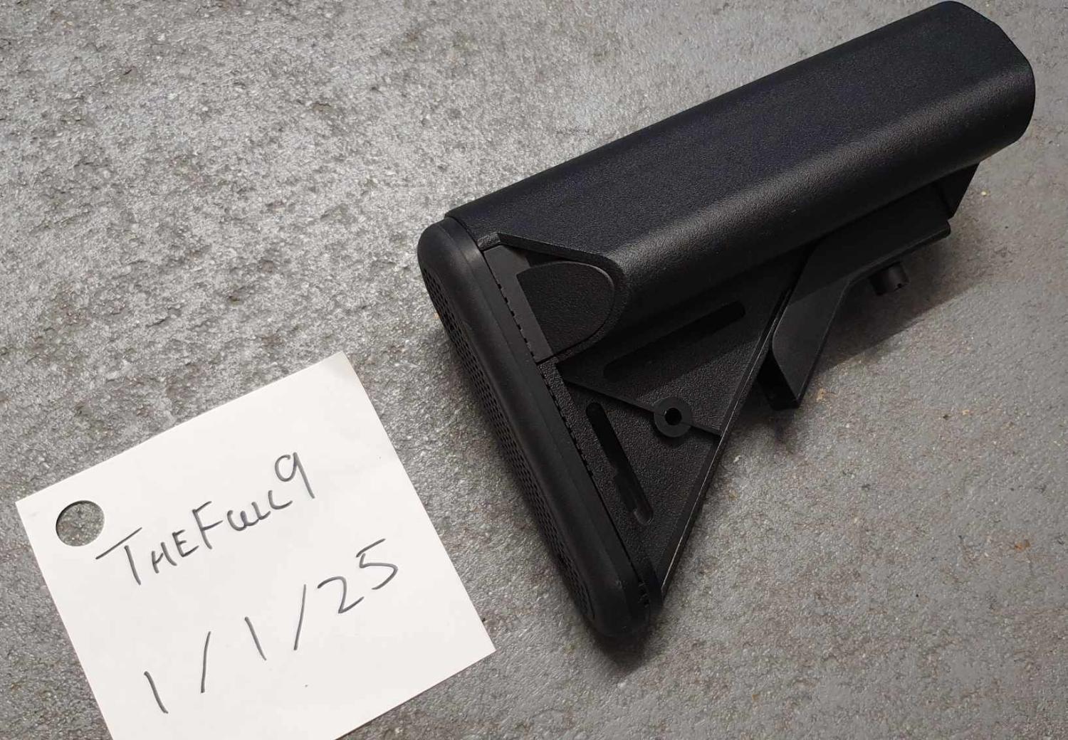 Don't know the brand, was thrown on by a Luke at Negative Airsoft from his parts pile, but the plastic is pretty good quality and decently thick as airsoft stocks go.
