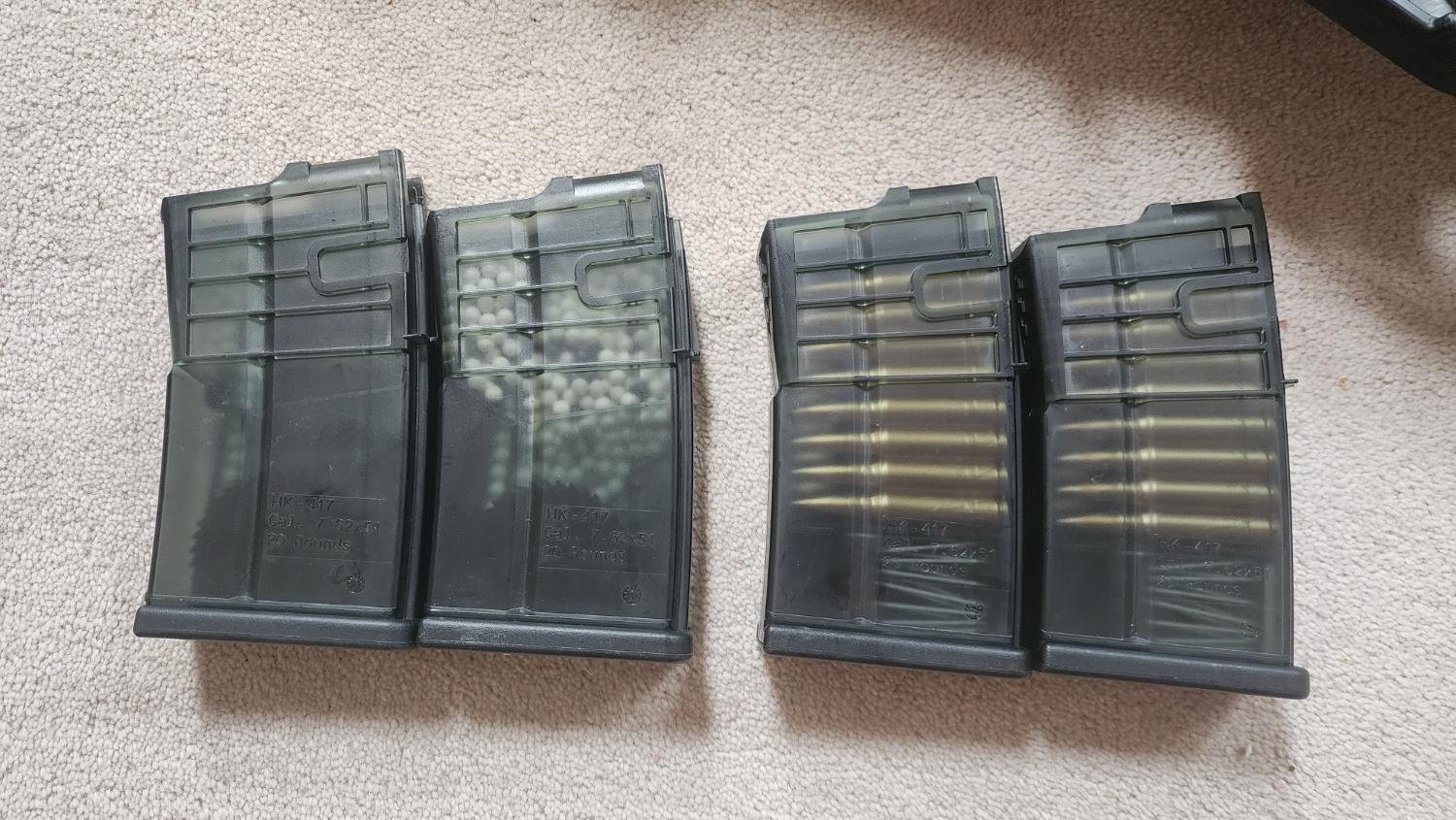 Includes 4 mags, 2 high cap and 2 mid caps with the fake rounds.