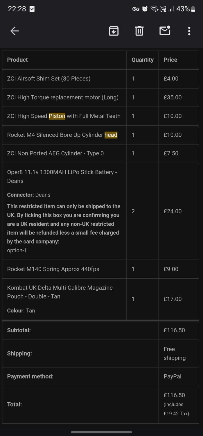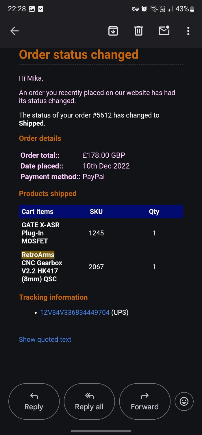 As with all my RIFs, I've also upgraded this, fully rebuilding the inside, from mosfet to motor to cylinder head, even replacing the gearbox casing entirely with the retro arms precision CNC'd aircraft grade Zinc-aluminium shell, due to a known issue where the OEM gearbox shell is prone to cracking over time or when going up to higher fps.