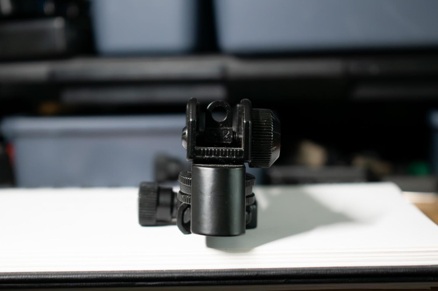 I believe this is a classic army rear sight. No slop or wobble in the elevation and windage adjustments and it locks onto the receiver with no issues.