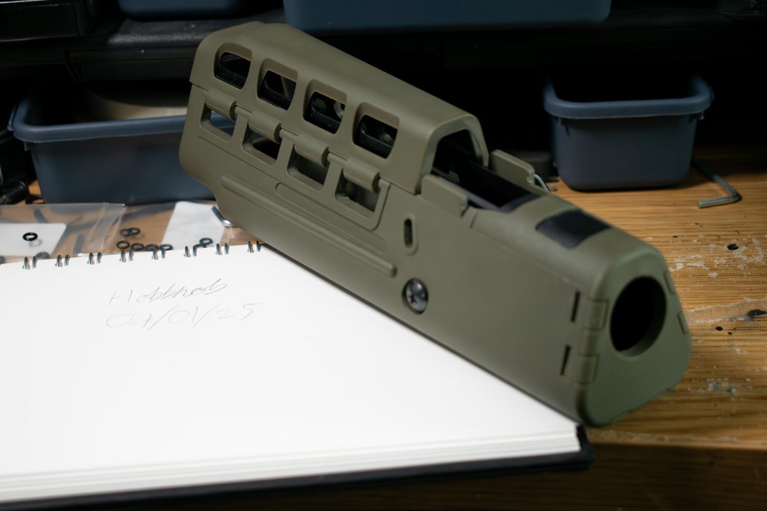 Includes fixing screw but not the receiver backplate that spaces between the receiver and the handguard, so this would probably be most beneficial to someone wanting a spare for modding