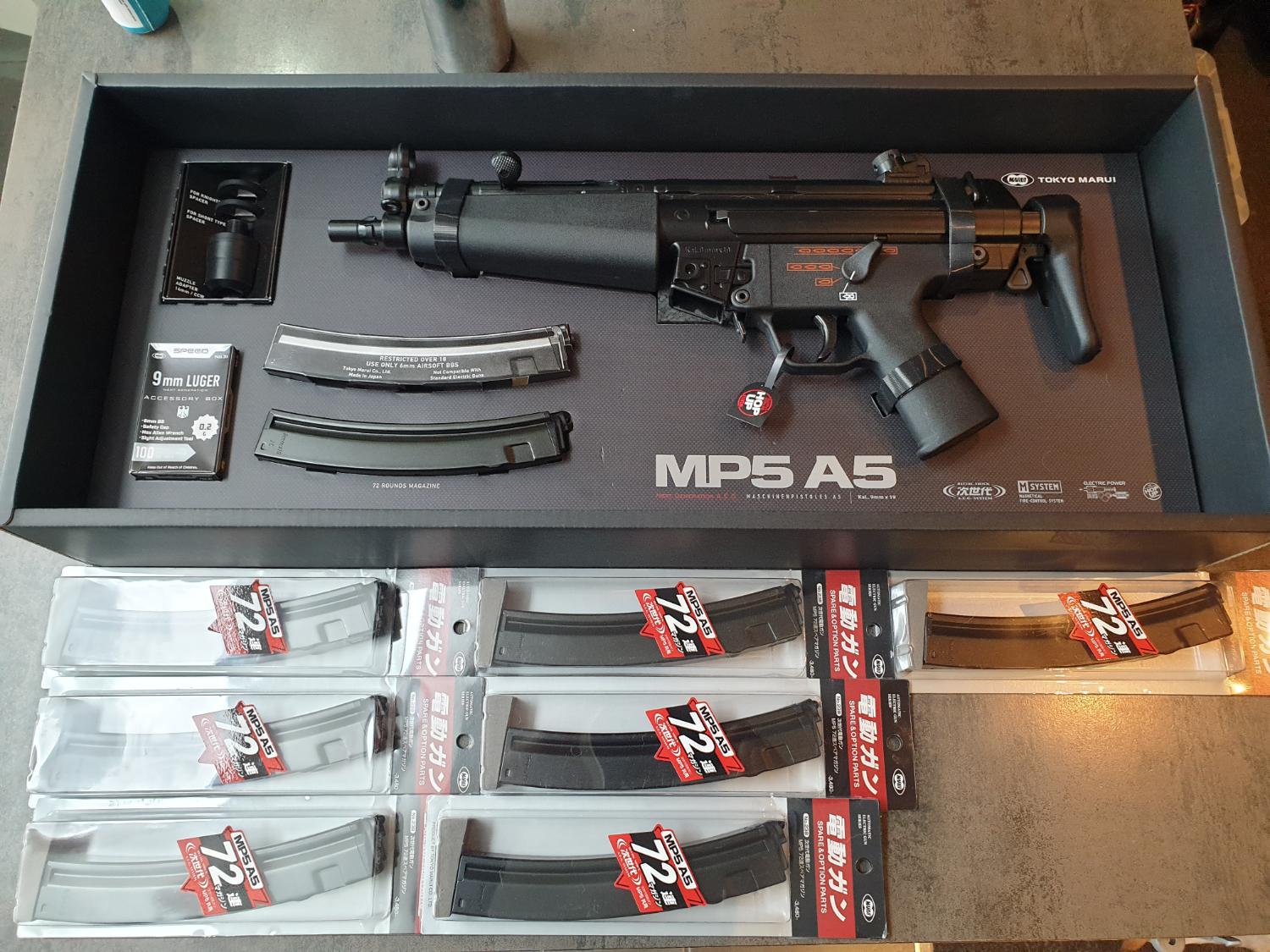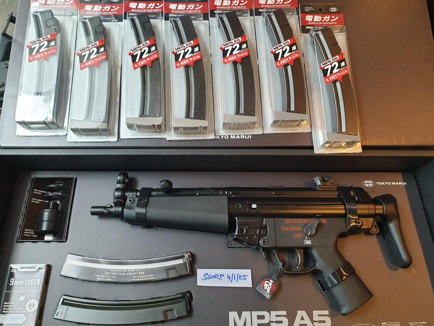 TM MP5A5 NGRS with 7 additional magazines and tritium front sight.