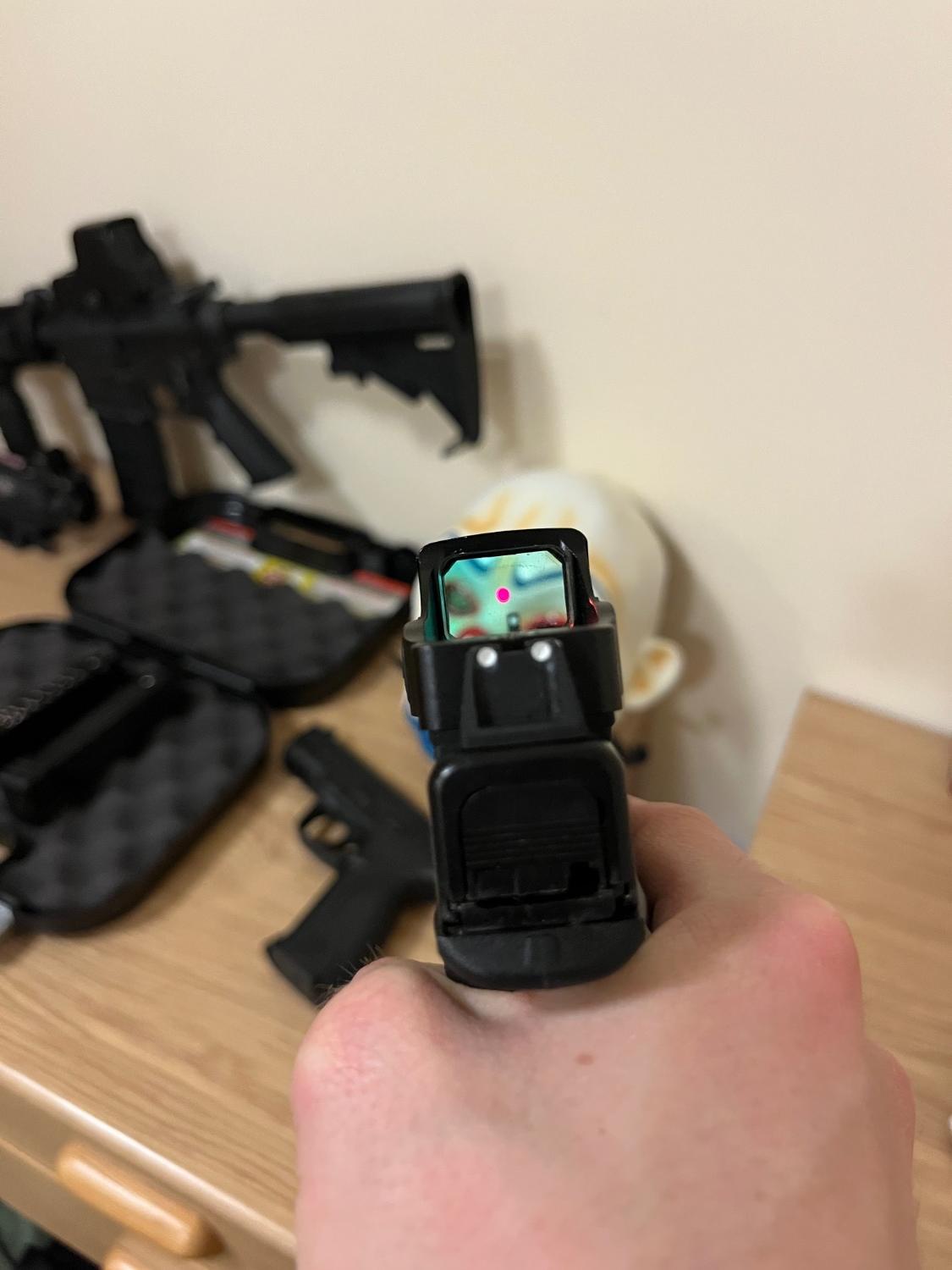 Also comes with a working red dot RMR sight, an iron sight base plate and raised iron sights.